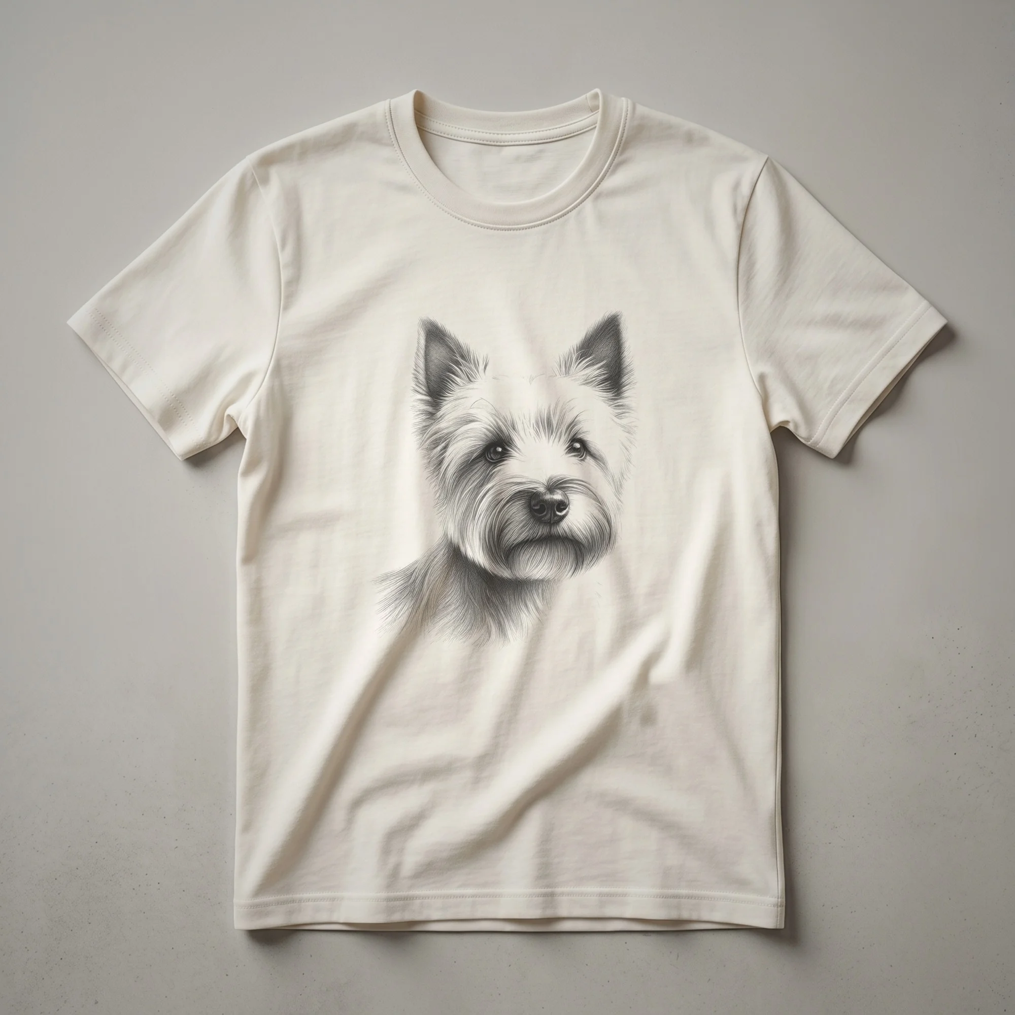 Norwich Terrier owners who appreciate classic art will reach for this unique graphic tee. The design features a striking, detailed line drawing of a Norwich Terrier's face, rendered in a vintage style that evokes a sense of timeless charm. This breed, originating from Norfolk, England, is known for its spirited personality and compact, sturdy build, making them a beloved companion. The intricate linework captures the breed's alert expression and characteristic wiry coat, presented against a dark background that makes the artwork pop. This shirt is more than just apparel; it's a statement piece for anyone who understands the special bond shared with these tenacious and affectionate dogs. It makes a thoughtful gift for the Norwich Terrier enthusiast in your life, whether for a birthday, holiday, or just because. Wear this eye-catching t-shirt to your next dog park visit, a casual outing with friends, or simply while relaxing at home with your canine companion.