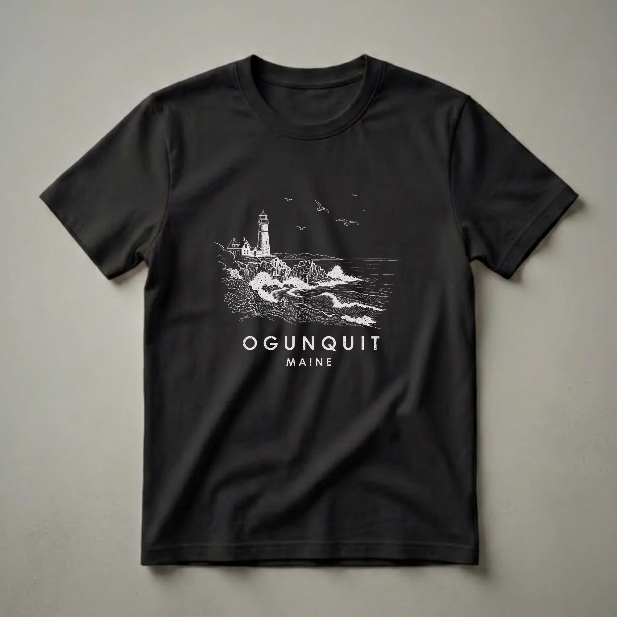 - Vintage Ogunquit Maine lighthouse graphic tee for coastal lovers.