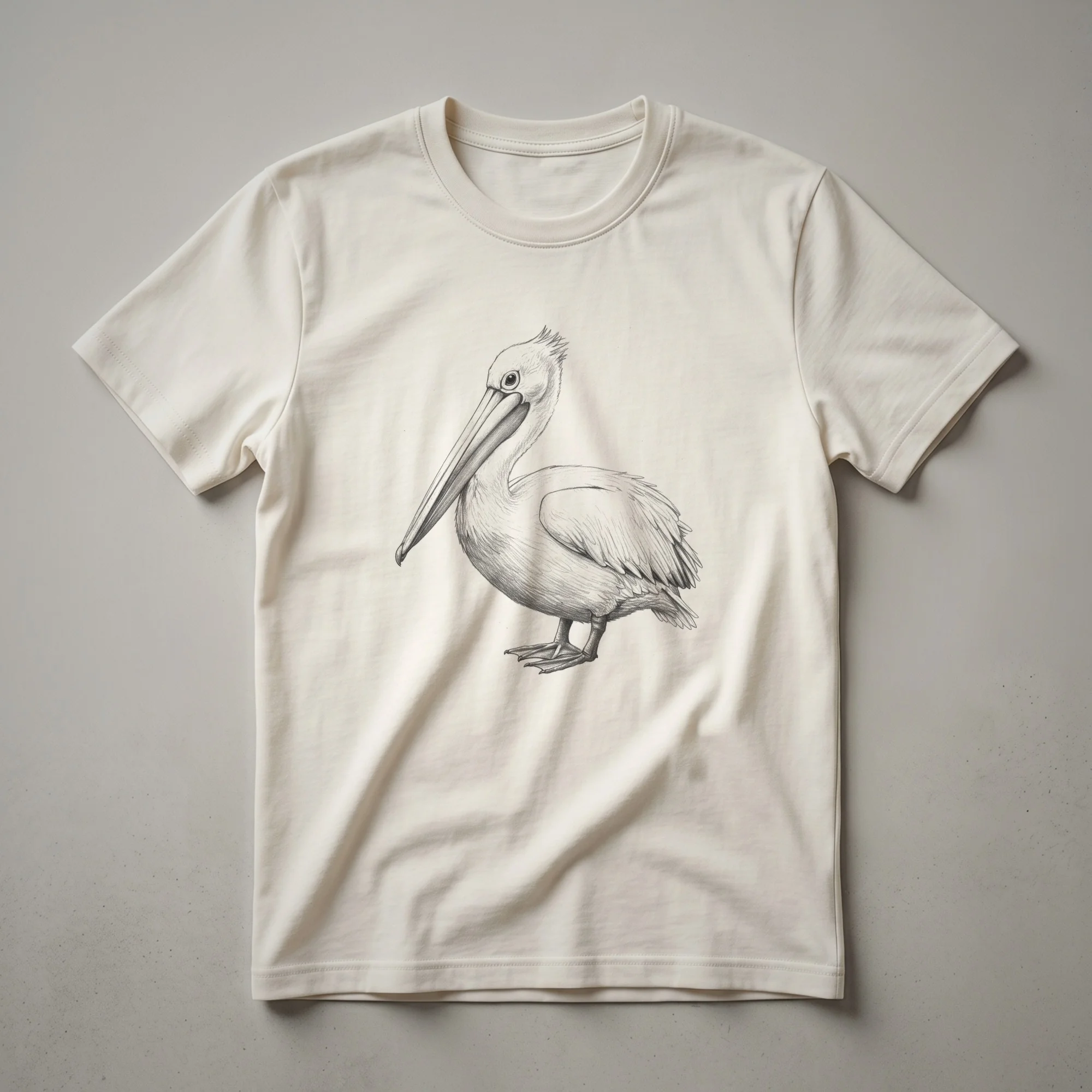 - This pelican graphic tee features delicate lines, evoking classic hand-sketched avian art.