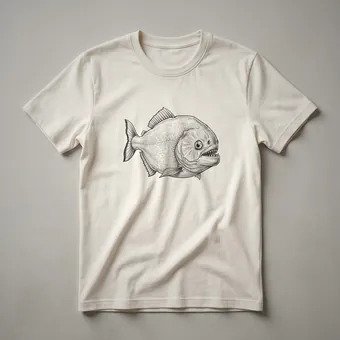 Piranhas, known for their sharp teeth and powerful jaws, are depicted in this striking vintage line drawing. This graphic tee captures the intricate details of the fish, from its fin structure to its formidable dentition, rendered in a classic artistic style. Piranhas are native to South American rivers, particularly the Amazon basin, where they are an integral part of the aquatic ecosystem. While often portrayed as aggressive predators, their diet is varied and includes insects, crustaceans, and smaller fish, with larger species sometimes scavenging. This shirt is a thoughtful gift for anglers, ichthyologists, or anyone fascinated by the unique biodiversity of freshwater environments. Wear this unique t-shirt to your next fishing trip or to a casual gathering where you want to spark conversation about marine life. It's a staple for any collection celebrating the wild and wonderful creatures of our planet's waterways. This eye-catching design makes a thoughtful gift for the wildlife enthusiast in your life who appreciates detailed natural history illustrations.