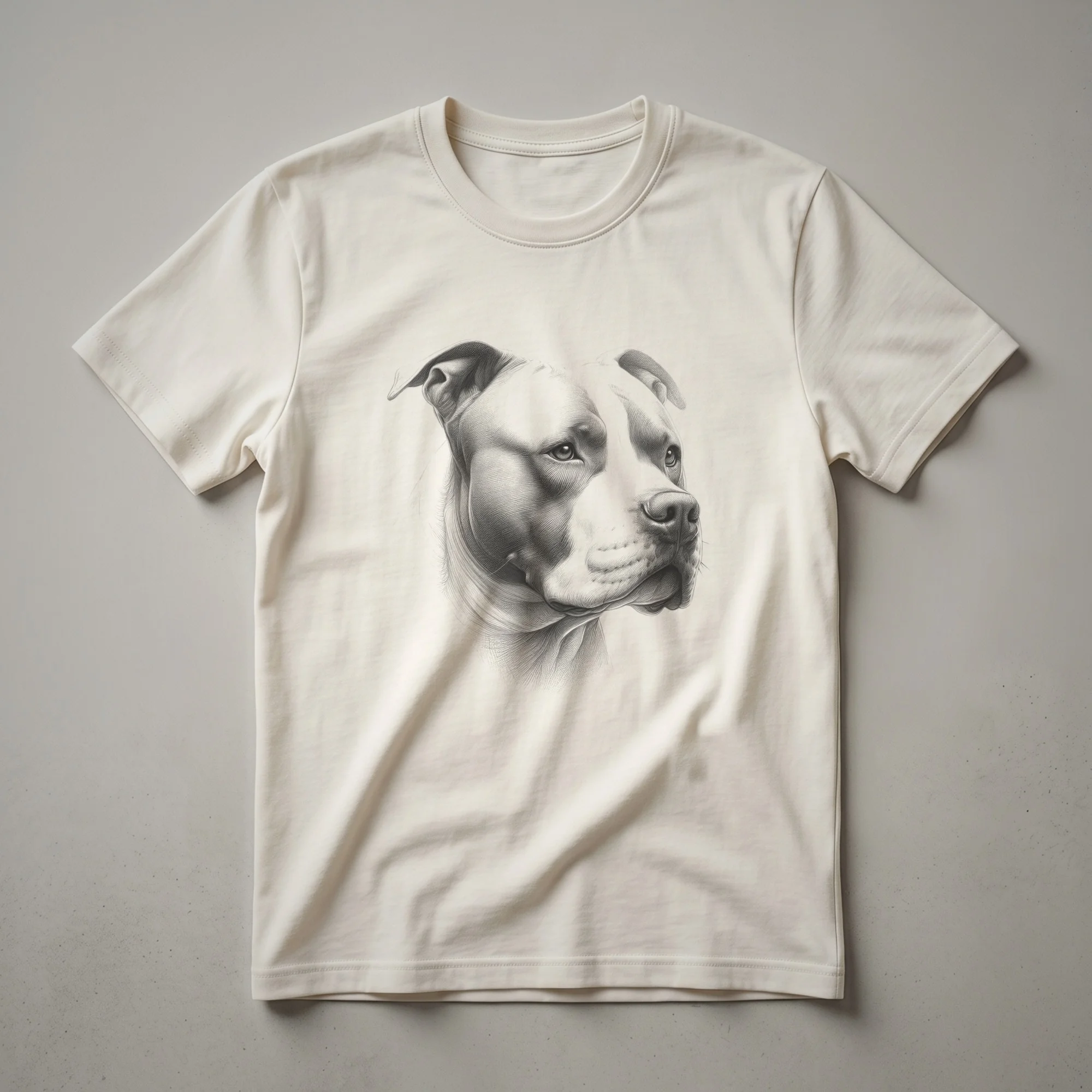 Pitbull owners who appreciate unique artistic representations of their beloved companions will reach for this striking graphic tee. The design features a detailed line art drawing of a pitbull's head in profile, rendered with a vintage aesthetic. This eye-catching graphic captures the breed's distinctive features with elegant, flowing lines, creating a sophisticated yet casual look. Pitbulls, known for their muscular build and affectionate nature, are often misunderstood, making this shirt a way to celebrate the breed's true character. This tee works well for anyone who wants to express their connection to their canine friend. It makes a thoughtful gift for a pitbull mom or dad, or for a friend who has a deep appreciation for dog art. Wear this shirt to your next dog park visit, a casual outing with friends, or simply while relaxing at home with your furry best friend. It's a versatile piece that adds personality to any wardrobe, celebrating the loyalty and spirit of the pitbull.