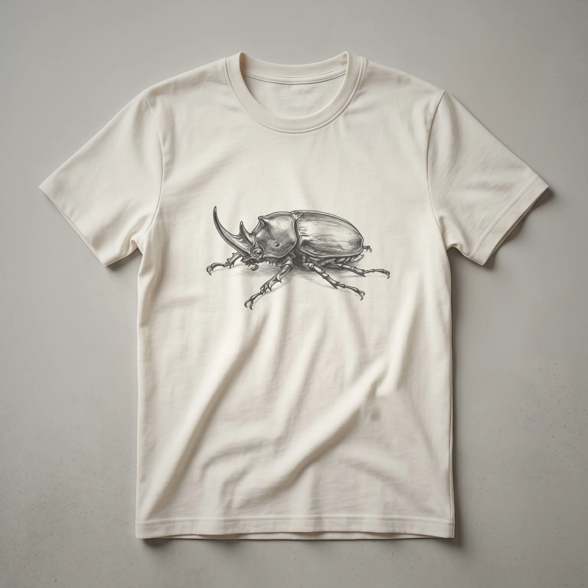Entomology enthusiasts and admirers of the natural world will appreciate this striking graphic tee featuring a detailed vintage-style drawing of a rhinoceros beetle. The intricate line art captures the formidable horn and segmented body of this impressive insect, rendered with a classic, almost scientific illustration aesthetic. Rhino beetles, known for their impressive size and the males' characteristic horns used in combat for mating rights, are fascinating creatures found in various tropical and subtropical regions worldwide. This shirt is a thoughtful gift for anyone with a passion for insects, wildlife, or unique vintage art. It's a conversation starter for nature walks, entomology club meetings, or casual outings. This t-shirt offers a distinctive way to express an interest in the intricate beauty of the insect kingdom, making it a go-to tee for those who appreciate the less common wonders of nature. Wear this shirt to express your fascination with these powerful beetles.
