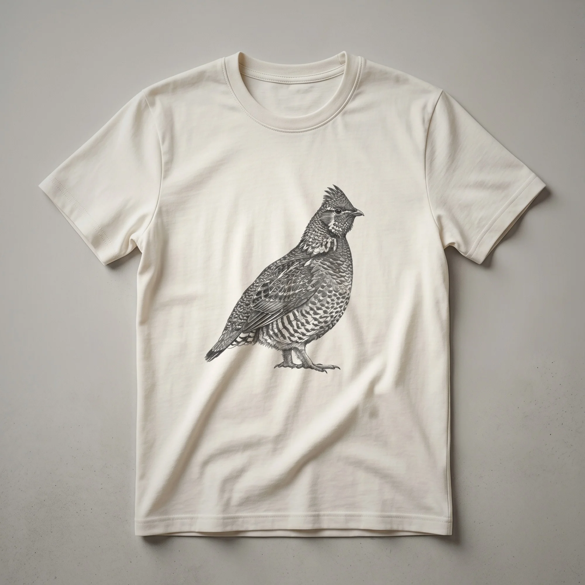 Hover to zoom · tap to expand Vintage Ruffed Grouse Drawing Art T-Shirt for Wildlife Enthusiasts