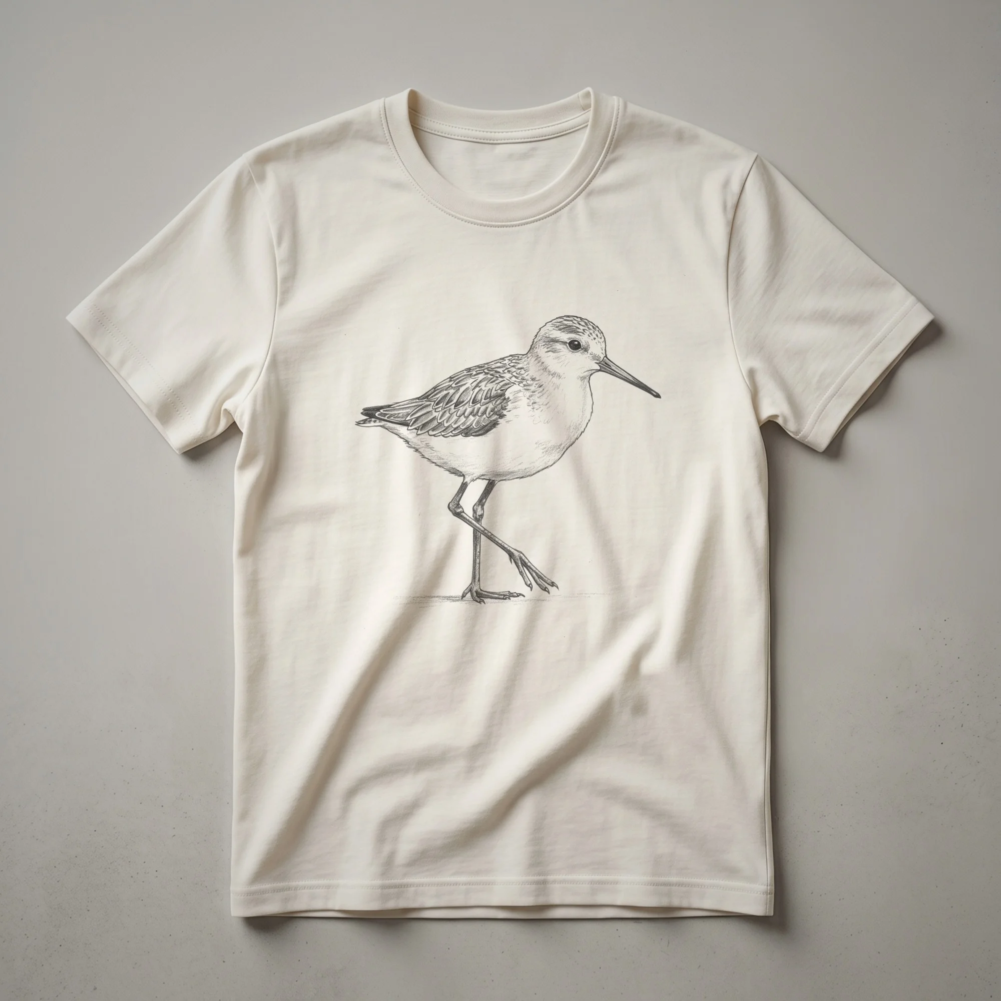 Sandpipers, a diverse group of wading birds, are celebrated in this striking vintage-style line drawing. This tee captures the essence of these agile creatures, known for their distinctive long bills and energetic foraging along shorelines. Sandpipers belong to the family Scolopacidae, which also includes snipes and woodcocks, and are found across the globe, often migrating vast distances between breeding and wintering grounds. This graphic shirt is a wonderful way for birdwatchers, nature lovers, and hikers to express their appreciation for these fascinating birds. The detailed illustration showcases the bird in a classic profile pose, highlighting its slender legs and textured plumage. This t-shirt makes a thoughtful gift for anyone who enjoys observing wildlife or appreciates the subtle beauty of ornithological art. Wear this shirt on your next nature walk or to a casual gathering to spark conversations about the natural world. This apparel is a staple in the collection for any bird enthusiast.