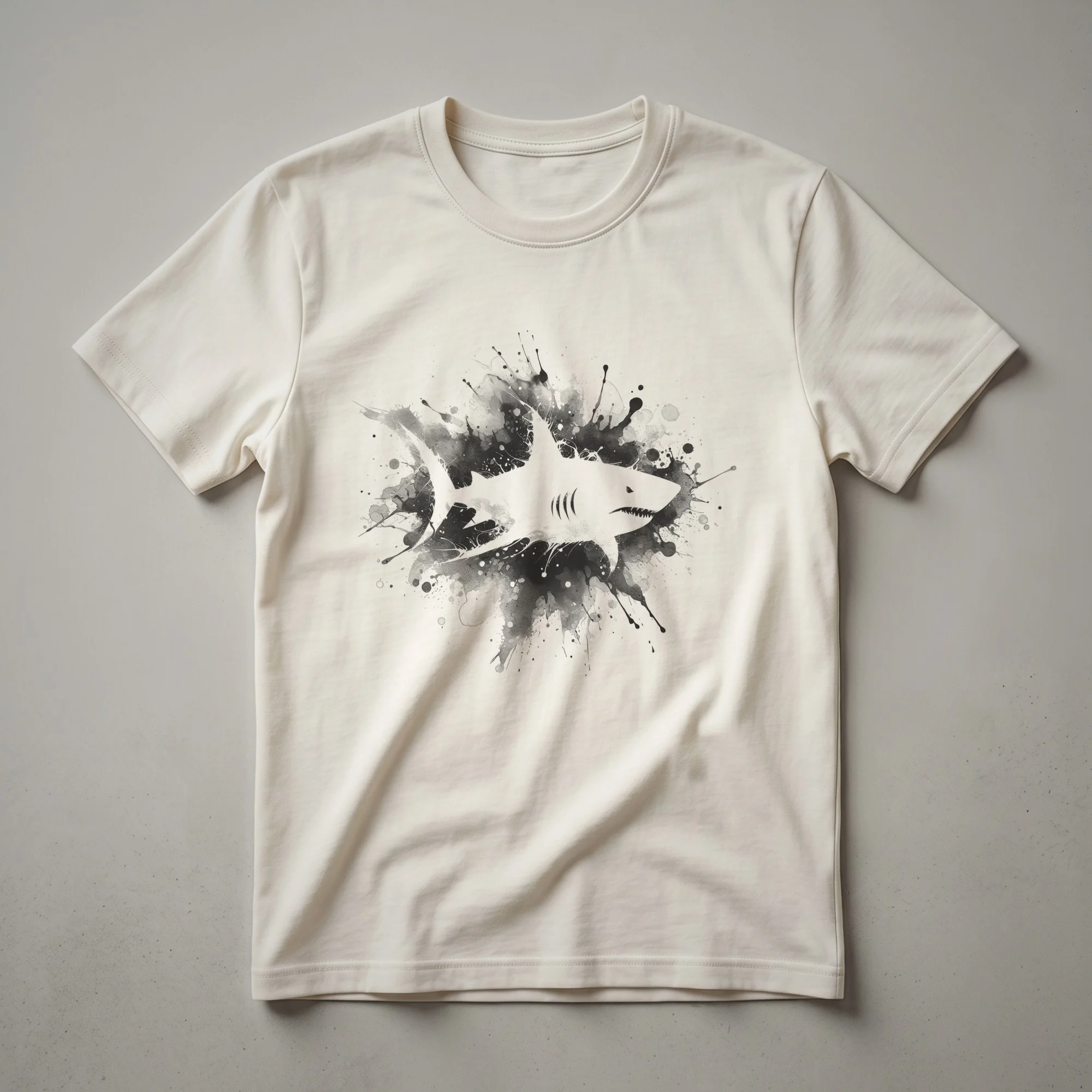 Hover to zoom · tap to expand Vintage Shark Abstract Ink Splatter Graphic T-Shirt for Ocean Lovers