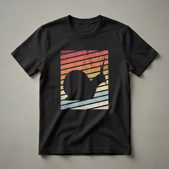 Snail enthusiasts who appreciate the unique beauty of these gastropods will reach for this striking graphic tee. The design features a bold black silhouette of a snail, complete with its shell and antennae, set against a backdrop of horizontal stripes in a retro sunset color palette. These stripes, reminiscent of 1980s aesthetics, are textured with a subtle grunge effect, giving the shirt a vintage feel. Snails, known for their slow and steady pace, are fascinating creatures found in diverse habitats worldwide, from damp gardens to tropical rainforests. They play a crucial role in ecosystems as decomposers and are a source of inspiration for many. This t-shirt is a thoughtful gift for anyone who finds joy in observing these gentle mollusks or for those who simply love unique, retro-inspired apparel. It's a conversation starter and a way to express a passion for the natural world. Wear this shirt to a nature walk, a casual outing with friends, or while tending to your garden, celebrating the charm of these slow-moving wonders.