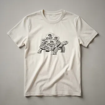 - Features a detailed vintage-style drawing of a tortoise with wave patterns.