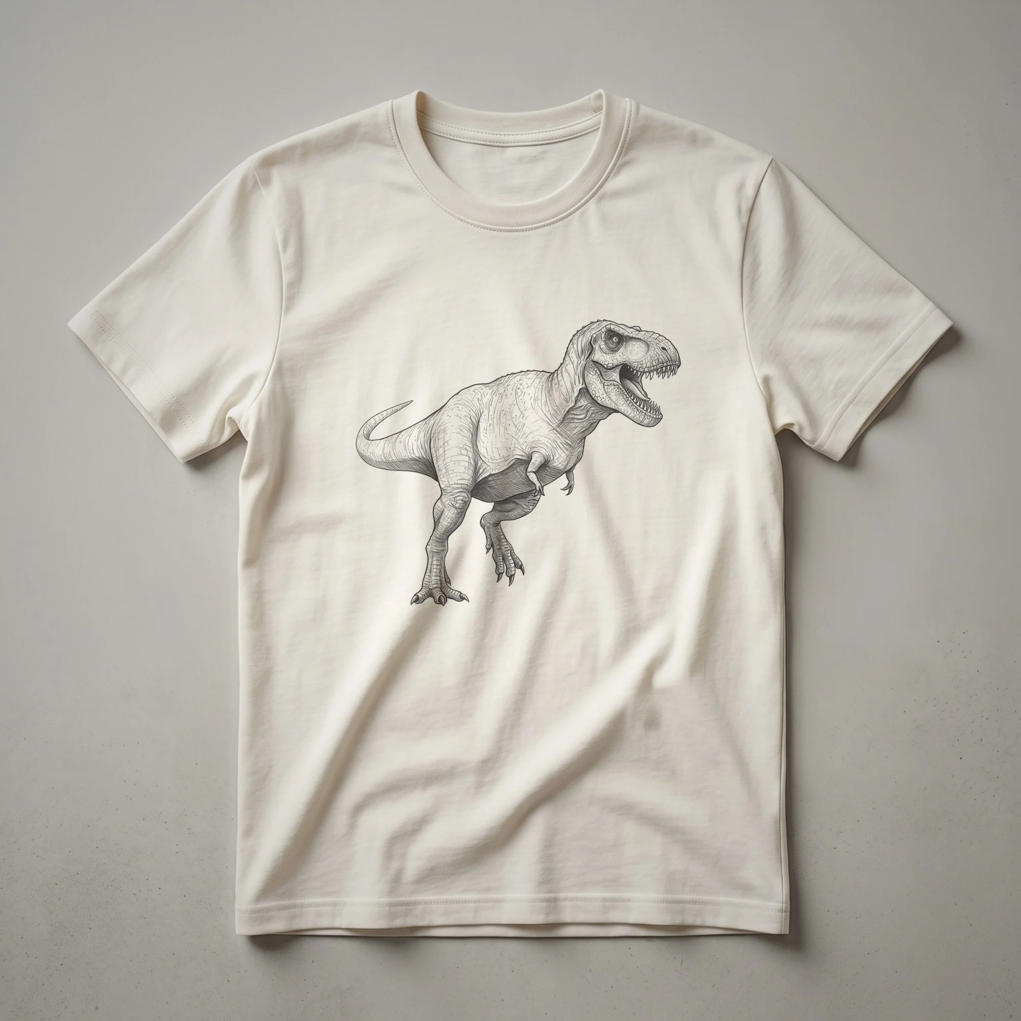 Dinosaur enthusiasts and paleontology buffs will appreciate the intricate detail of this Tyrannosaurus Rex line art drawing. The T-Rex, a formidable predator that roamed North America during the Late Cretaceous period, is depicted in a classic vintage style, showcasing its powerful build, sharp teeth, and iconic stance. This striking graphic tee captures the essence of the king of the dinosaurs, making it a standout piece for anyone fascinated by the Mesozoic era. The detailed linework gives the artwork a timeless, artistic feel, reminiscent of early scientific illustrations. This shirt is a fantastic way for kids and adults alike to express their passion for these ancient giants. It makes a thoughtful gift for birthdays, holidays, or just because for the dinosaur lover in your life. Wear this t-shirt to a museum exhibit, a dinosaur-themed party, or simply as a conversation starter on any casual outing. It's a staple for anyone who loves to learn about Earth's ancient past and the magnificent creatures that once inhabited it. This tee is a go-to for expressing your inner paleontologist.