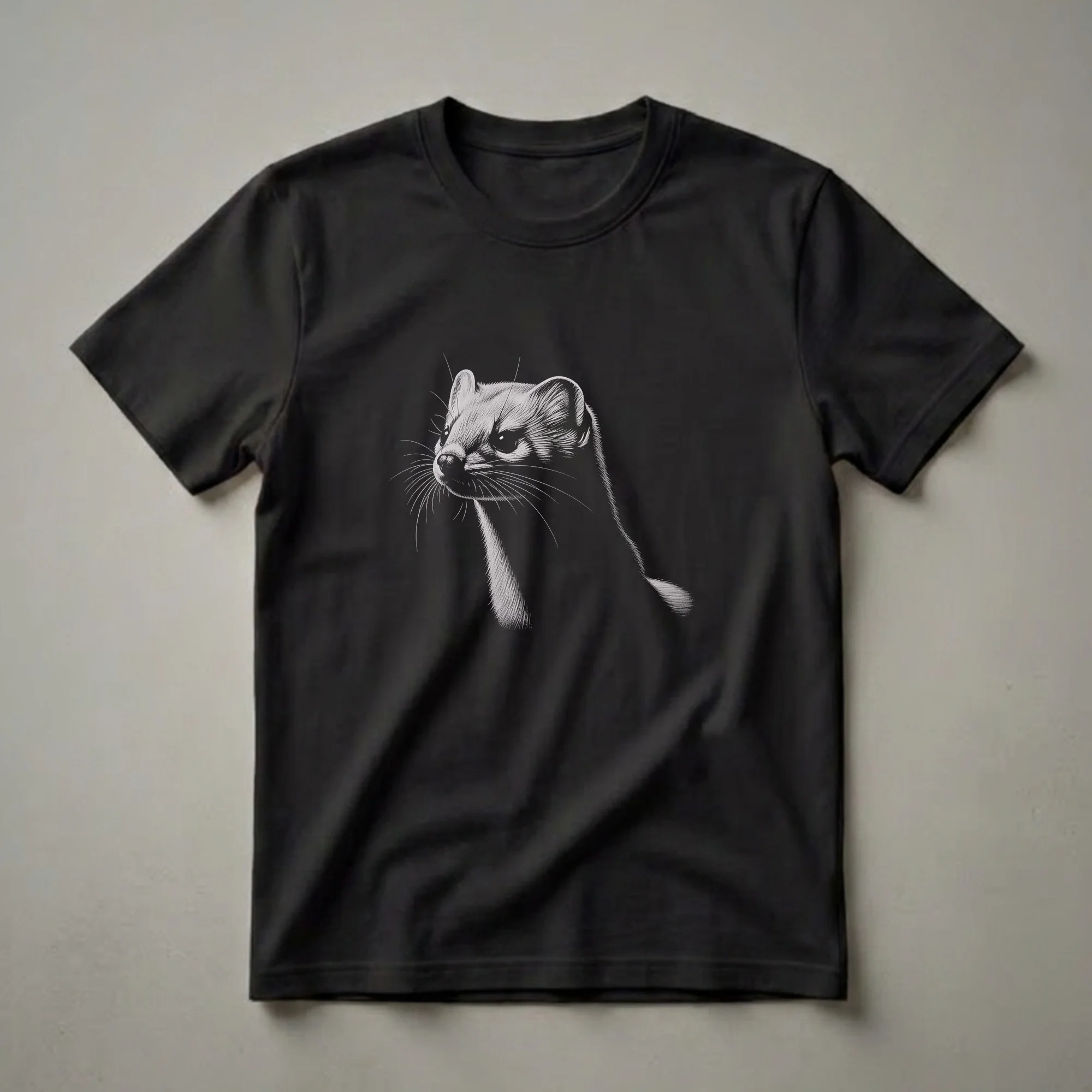 - Celebrate the striking elegance of this vintage weasel line drawing graphic tee.