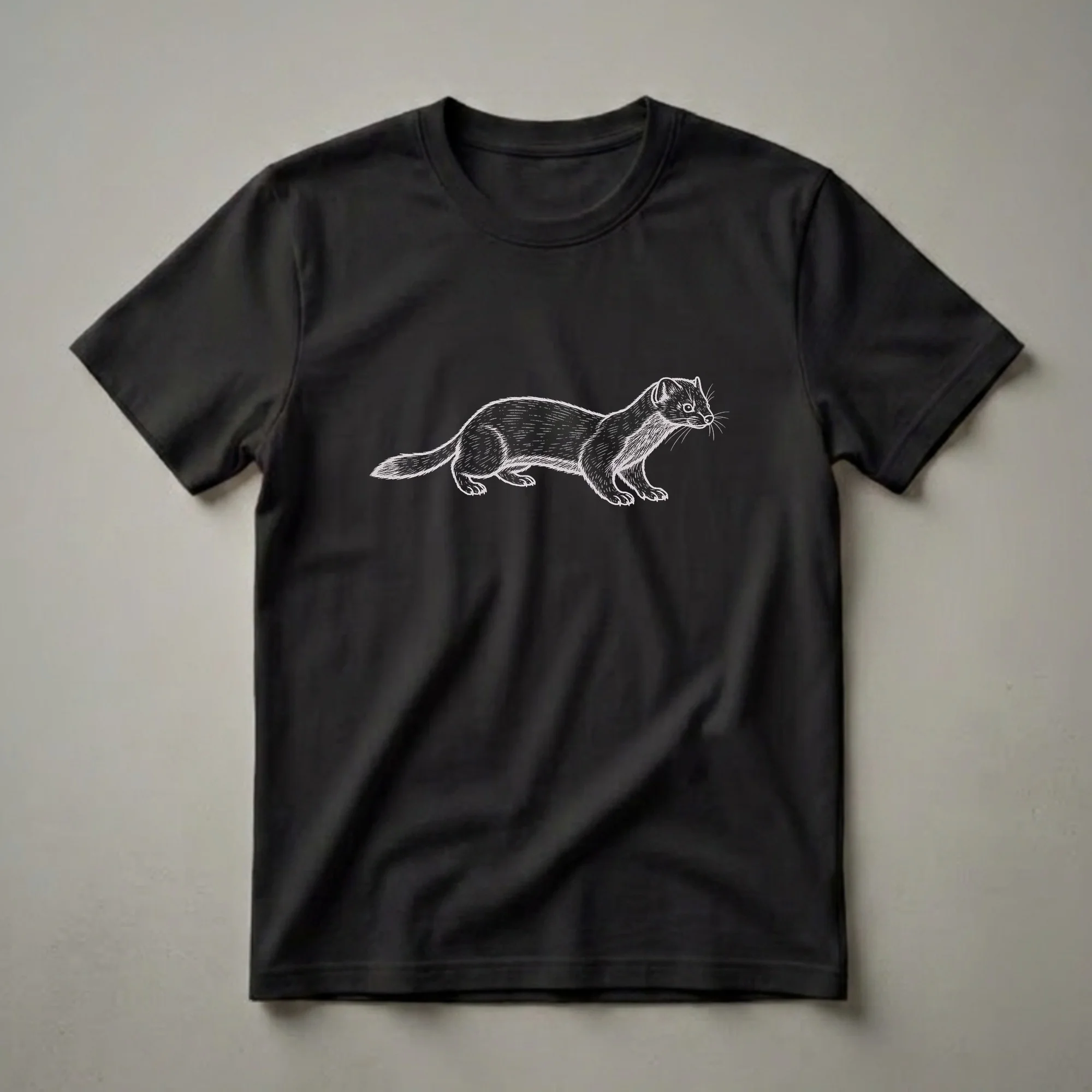 - Unique graphic tee for admirers of vintage weasel mammal drawings.