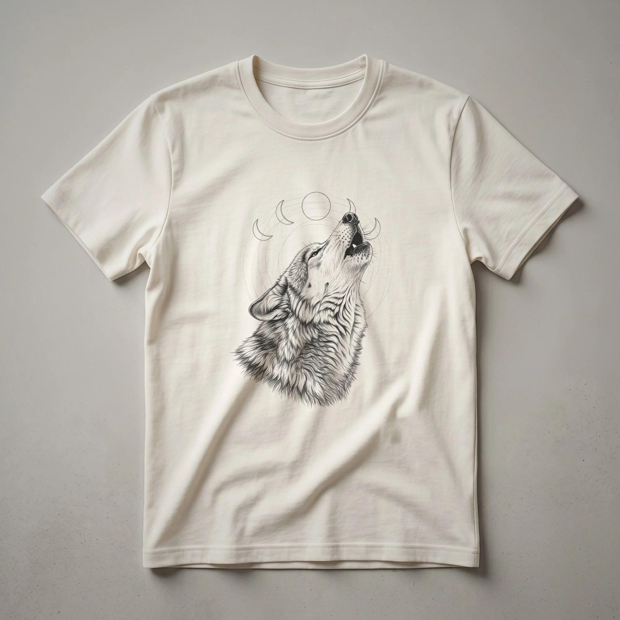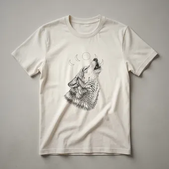 Wildlife enthusiasts and lovers of the wild will appreciate this striking graphic tee featuring a detailed line drawing of a wolf. The artwork captures a wolf in mid-howl, its head tilted towards a series of moon phases, including a prominent crescent moon. This design evokes the primal connection between wolves and the night sky, a common motif in folklore and nature studies. Wolves, known for their complex social structures and pack dynamics, are apex predators found across diverse habitats in the Northern Hemisphere, from dense forests to open plains. This shirt is a thoughtful gift for anyone who admires these majestic creatures or enjoys nature-inspired apparel. It's a go-to tee for casual outings, hiking trips, or simply relaxing at home while celebrating the untamed spirit of the wolf. The vintage aesthetic of the drawing adds a timeless appeal, making this t-shirt a unique addition to any wardrobe. Wear it to express your connection to nature and the wild.