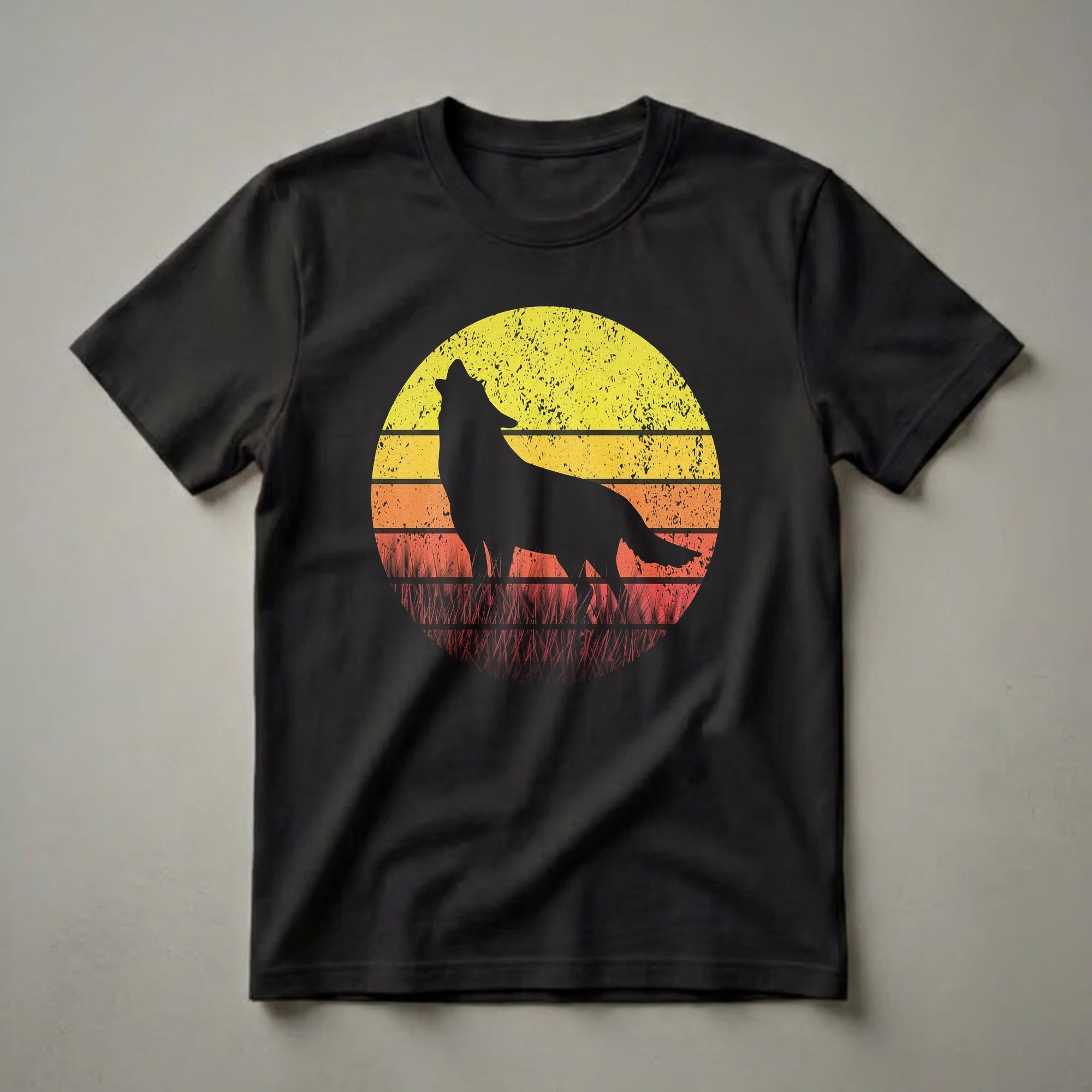 Hover to zoom · tap to expand Vintage Wolf Howling Retro Sunset Graphic T-Shirt for Dog Lovers
