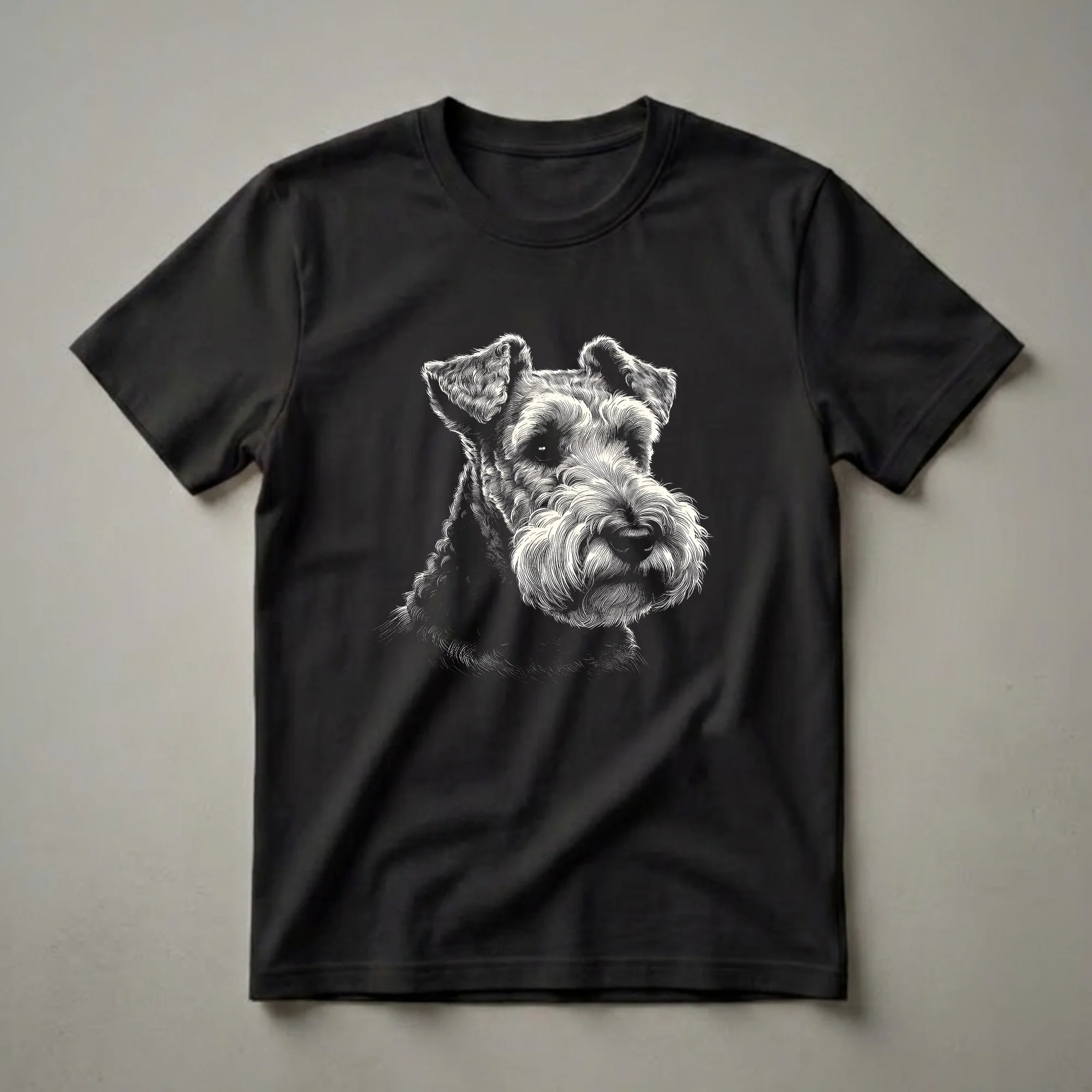Show off your love for the spirited Welsh Terrier with this striking scratchboard-style graphic art t-shirt. This t-shirt captures that essence with a detailed scratchboard-style illustration of a Welsh Terrier's face. The intricate linework brings out the texture of the dog's fur, from its expressive eyes to its characteristic beard and eyebrows, all set against a stark black background. This graphic tee is a fantastic way for any Welsh Terrier mom or dad to display their affection for their canine companion. It makes a thoughtful gift for birthdays, holidays, or just because for the Welsh Terrier enthusiast in your life. Wear this unique shirt to dog parks, casual outings, or while relaxing at home with your furry friend. It's a staple in the collection for anyone who cherishes this lively terrier breed.