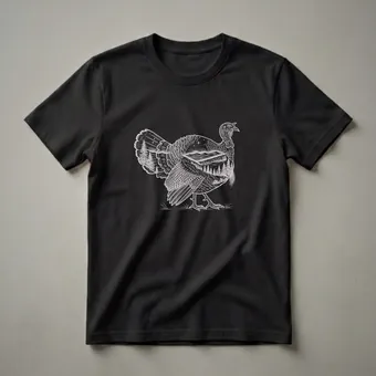 Wild turkey enthusiasts will appreciate the intricate detail of this graphic tee, which features a striking white line drawing of a wild turkey. The bird's body is artfully filled with a serene nature scene, complete with rolling hills, dense pine forests, and a star-filled night sky. This unique design captures the essence of the wild, making it a standout piece for anyone who cherishes the outdoors. Wild turkeys, known for their intelligence and adaptability, are native to North America and can be found in a variety of habitats, from forests to grasslands. This shirt is a thoughtful gift for birdwatchers, hikers, or anyone who finds solace in the natural world. Wear this tee on your next outdoor adventure or to a casual gathering to spark conversations about wildlife and conservation. It's a staple in the collection for those who connect with the untamed beauty of nature. This apparel celebrates the spirit of the wild.