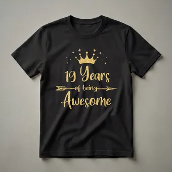 Nineteen years of being fabulous is a milestone worth celebrating, and this striking graphic tee is the perfect way to mark the occasion. The design features a glittering gold crown atop the bold text '19 Years of being eye-catching,' accented by a decorative arrow and scattered stars. This t-shirt is a wonderful choice for any young woman turning 19, signifying her transition into a new chapter of adulthood with style and confidence. It makes a thoughtful gift for a daughter, niece, or friend who is excited to celebrate this significant birthday. Imagine her wearing this shirt to her birthday dinner, a party with friends, or a casual brunch, feeling celebrated and radiant. This shirt is more than just apparel; it's a statement piece for a young woman embracing her nineteen years and looking forward to the future. It's a staple in any birthday collection for those who appreciate a touch of sparkle and a bold declaration of their achievements.