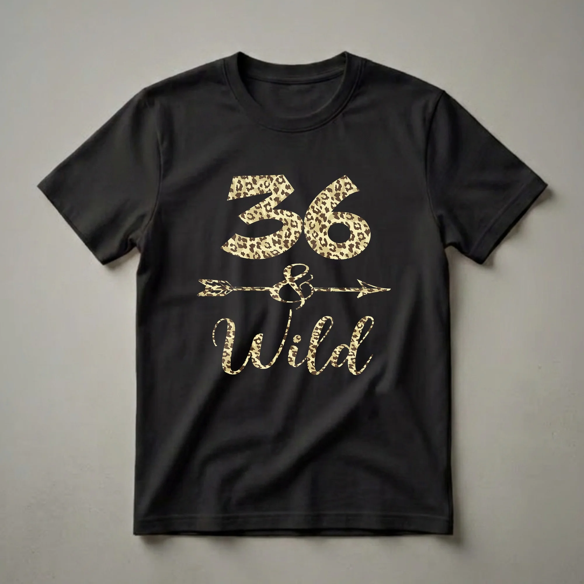 - "36 and Wild" leopard print graphic tee for women celebrating their 36th birthday.