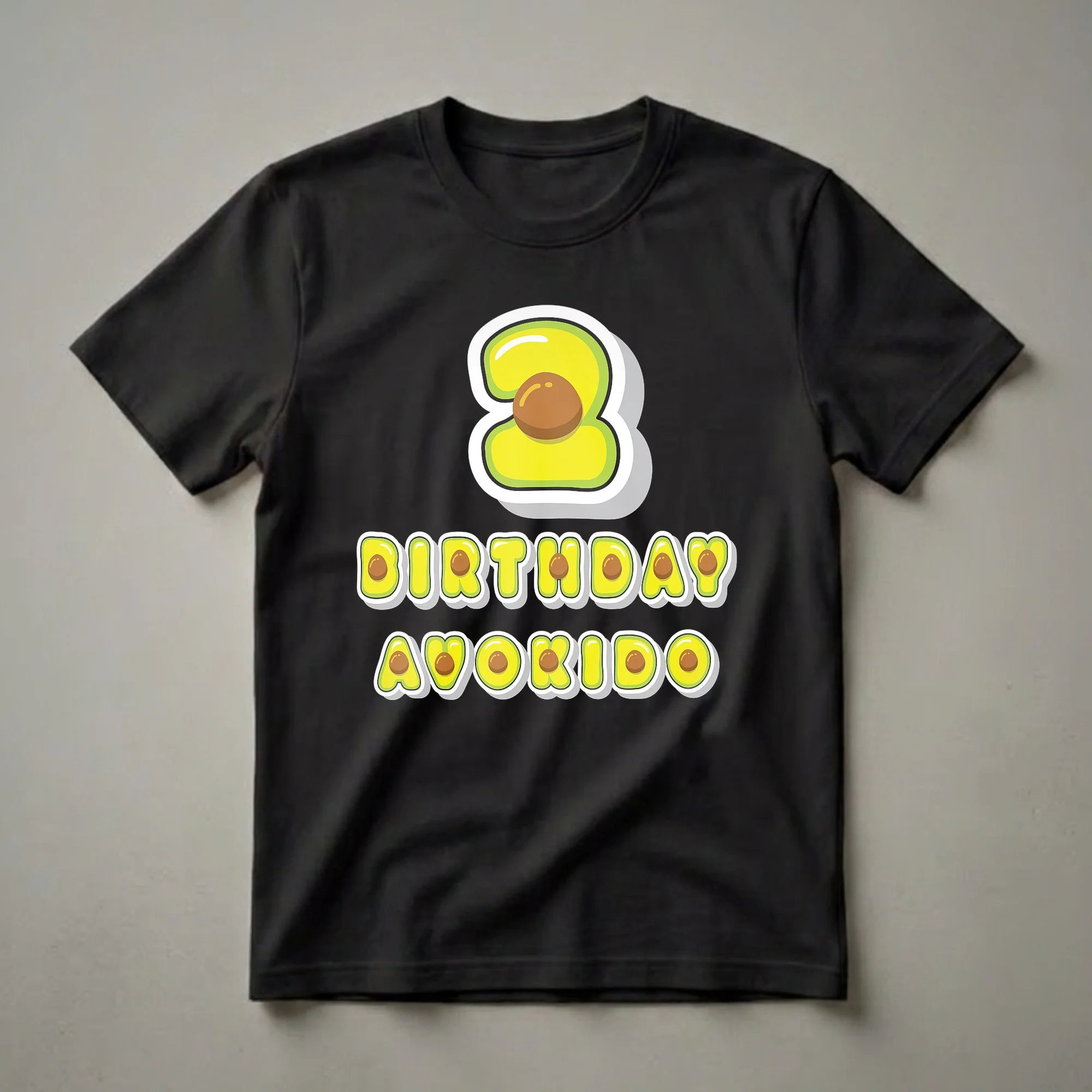 This vibrant t-shirt celebrates a 3rd birthday with a playful "Avokido" design. The graphic prominently features the number 3, cleverly crafted to resemble a sliced avocado, complete with its brown pit. Below the number, the words "BIRTHDAY AVOKIDO" are displayed in a fun, bubbly font, with each letter also designed to look like a piece of avocado. This shirt is a delightful choice for any child turning three. Avocados, known for their creamy texture and healthy fats, are a popular fruit enjoyed worldwide. This shirt captures the fun and whimsy of a child's birthday, blending a beloved fruit with a milestone celebration. It's a fantastic option for a toddler's birthday party, a casual outing, or as a thoughtful gift for a special 3-year-old. This unique tee is sure to bring smiles and make the birthday celebration even more memorable. It's a go-to tee for any little one who loves avocados or unique, fun designs.
