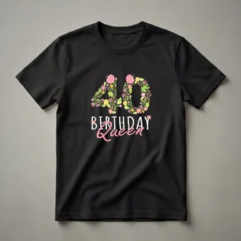 - Features stylish 'Birthday Queen' text with a floral '40' graphic.
