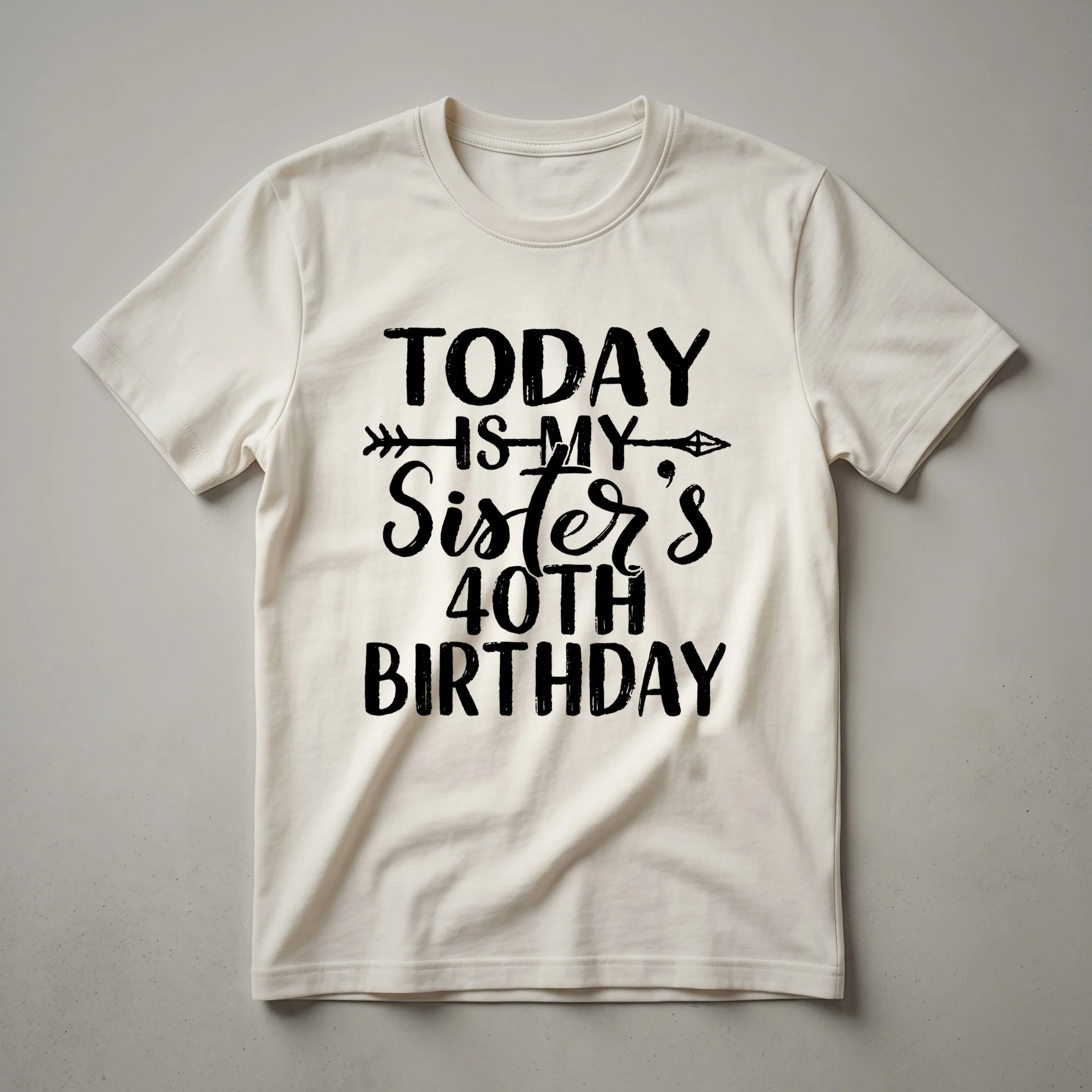 Turning 40 is a significant milestone, and this graphic tee is designed to celebrate that special occasion for your sister. The design features bold, distressed lettering that conveys a sense of retro cool and enduring style, making it a standout piece for any birthday celebration. This t-shirt is more than just apparel; it's a statement piece for the woman entering a new decade with confidence and flair. It’s a thoughtful gift for any sister who appreciates a touch of humor and a lot of personality. Imagine her wearing this shirt to her birthday dinner, brunch, or any party thrown in her honor, sparking conversations and smiles. The distressed font adds a vintage vibe, suggesting that while 40 is a new chapter, it’s built on a foundation of experience and wisdom. This shirt works well for sisters who embrace their age with a sense of fun and a desire to stand out. It’s a staple in the collection for any birthday girl ready to mark her 40th year with memorable style. This graphic tee is a fantastic way to show your sister you care and celebrate this important birthday.