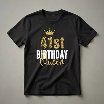 - This 41st Birthday Queen graphic tee features a dazzling gold crown and sparkling text.