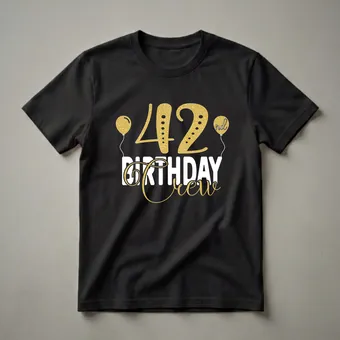 - "42nd Birthday Crew" graphic tee for the birthday person.