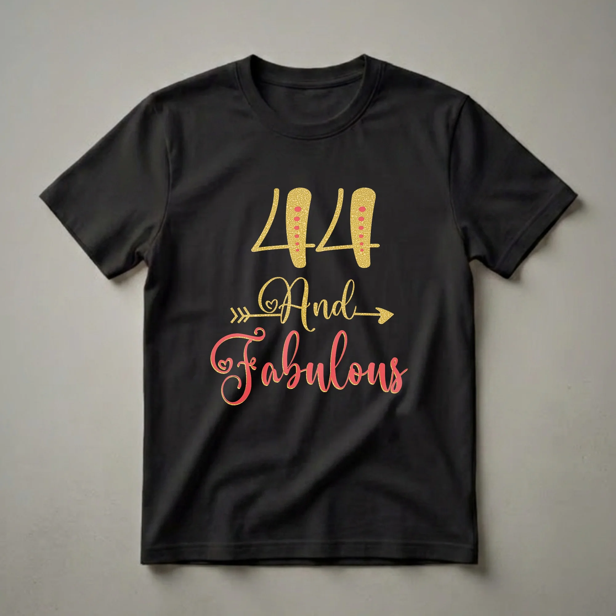 - Celebrate your 44th birthday with this '44 And Fabulous' glitter script women's t-shirt.