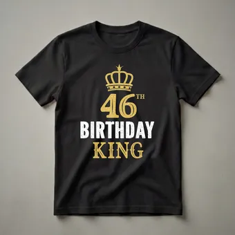 - Features a bold '46th Birthday King' graphic with a golden crown.