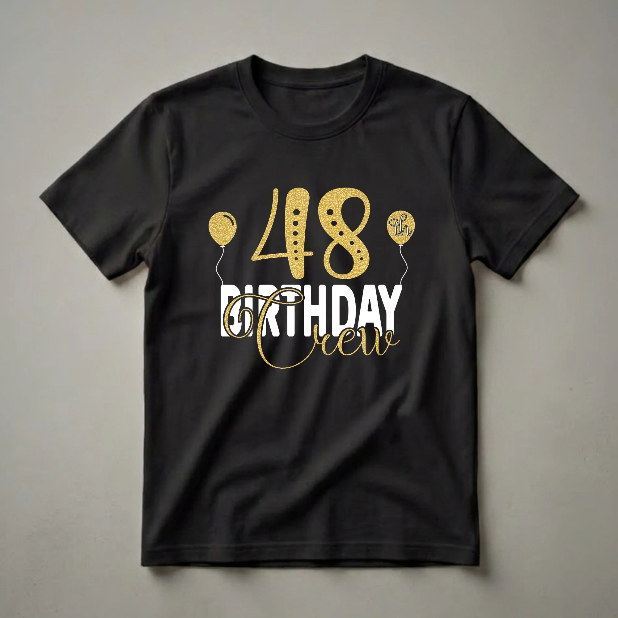 - "48th Birthday Crew" graphic tee for the birthday person's family.