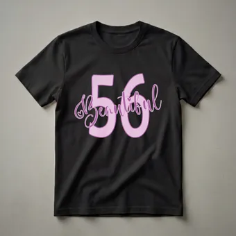 Turning 56 is a significant milestone, and this 'Beautiful 56' graphic tee is a wonderful way for any woman to celebrate her birthday. The design features the number 56 prominently, with the word 'Beautiful' elegantly scripted and integrated into the numerals. The script font adds a touch of grace and style, making this more than just a birthday shirt; it's a statement piece. This t-shirt is a thoughtful gift for any woman reaching this age, whether it's for her birthday dinner, a casual get-together with friends, or just to wear as a daily reminder of her fabulousness. The design is eye-catching and celebratory, embodying the spirit of embracing this new chapter with confidence and joy. It's a staple in any birthday collection, offering a unique way to mark the occasion. This shirt is a go-to tee for anyone wanting to showcase their birthday pride with a touch of elegance. It makes a thoughtful gift for a mother, wife, sister, or friend who is turning 56 and deserves to feel celebrated.