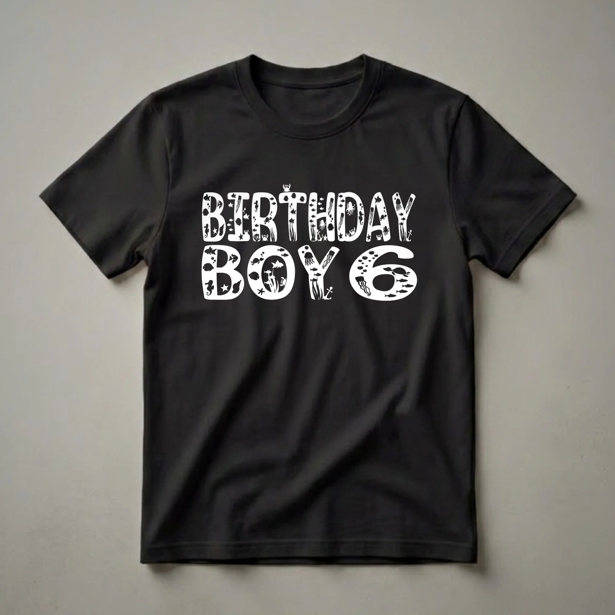 - Birthday shirt for a 6-year-old boy celebrating his special day.