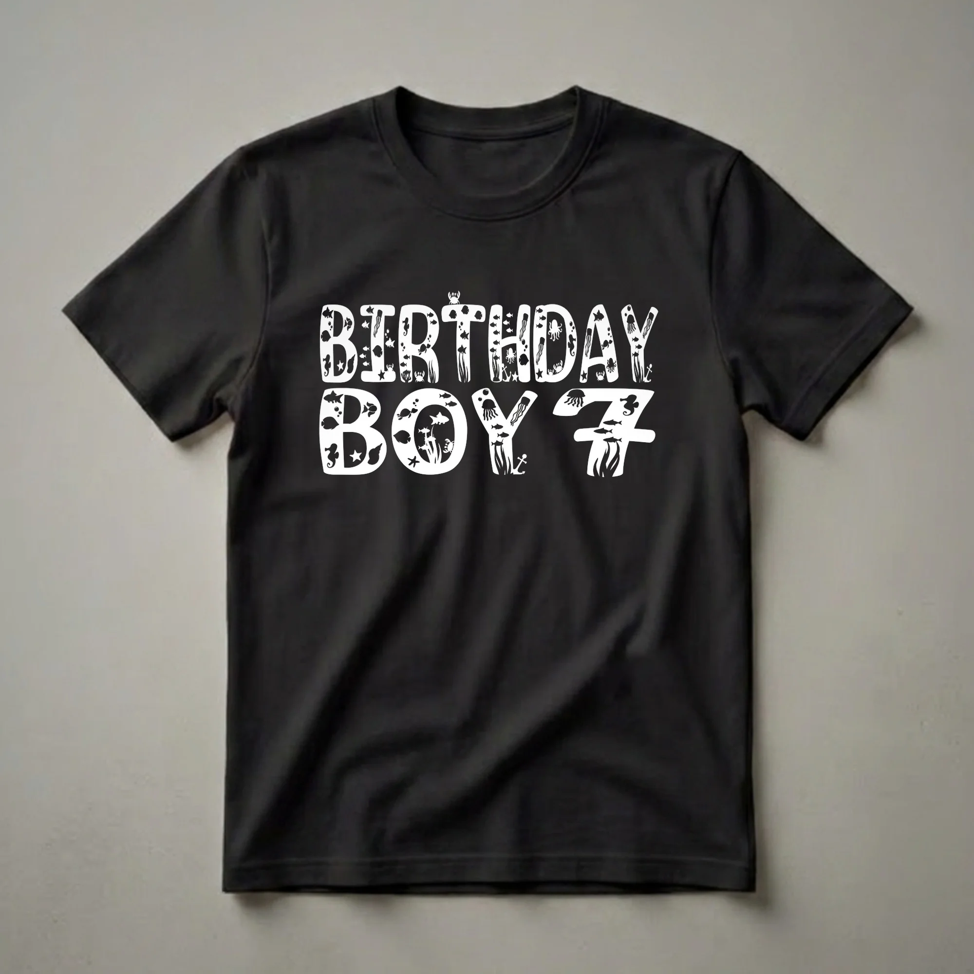 - Birthday Boy 7 t-shirt for a 7-year-old's special day.