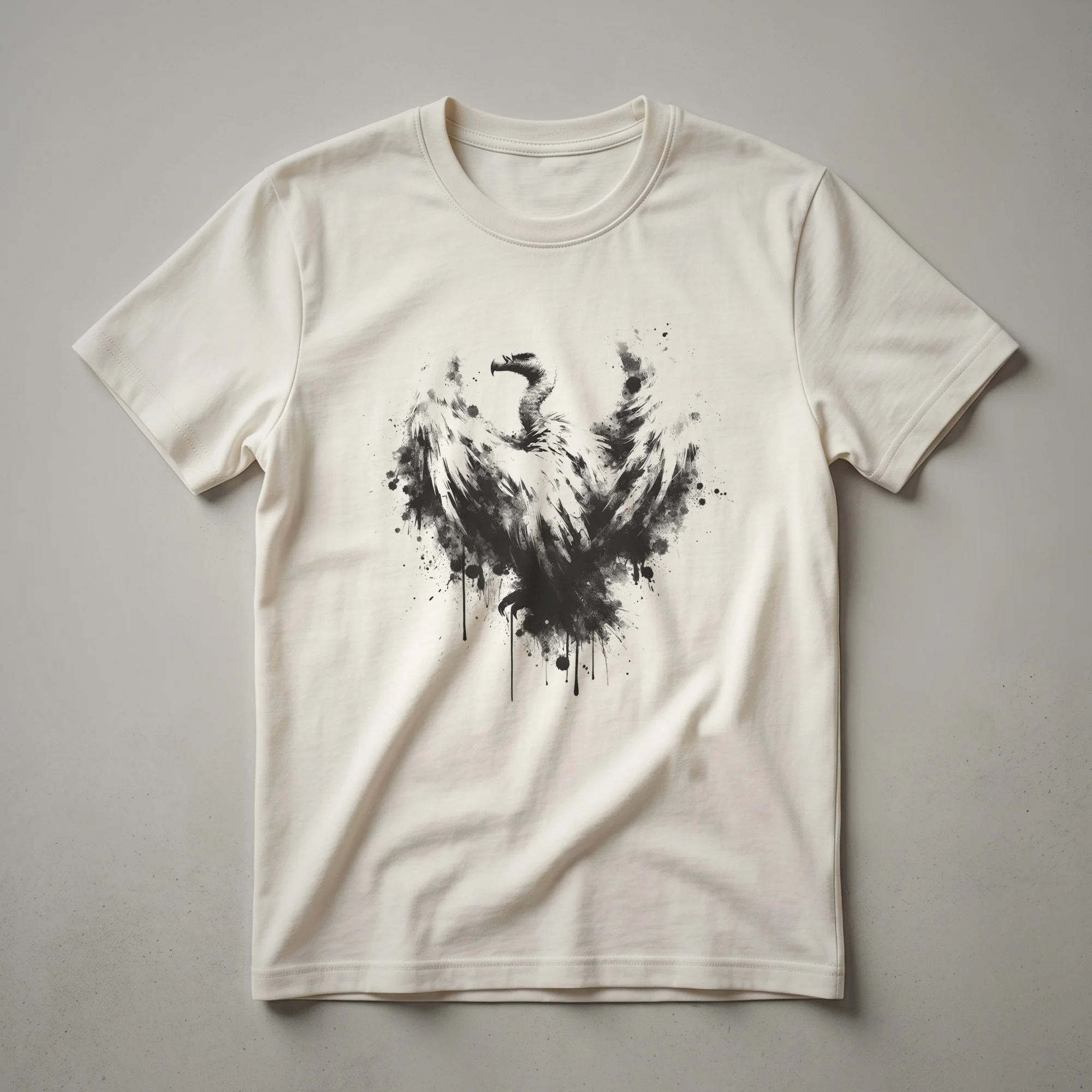 Wildlife enthusiasts who admire the stark beauty of birds of prey will reach for this abstract vulture drawing t-shirt. The design features a striking, ink-drawn vulture with a distressed, splattered effect, evoking a sense of raw nature. Vultures, such as the Turkey Vulture (Cathartes aura), play a crucial role in ecosystems by scavenging carrion, helping to prevent the spread of disease. This graphic tee is a thoughtful gift for bird watchers, hikers, or anyone who appreciates the unique aesthetic of these important scavengers. Wear this shirt on your next outdoor adventure or casual outing to express your connection to the natural world. This unique t-shirt offers a bold statement for those who understand the vital role of vultures in our environment.