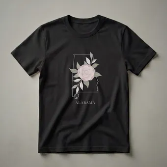 - Wear this Alabama camellia flower tee to celebrate local beauty and state pride.
