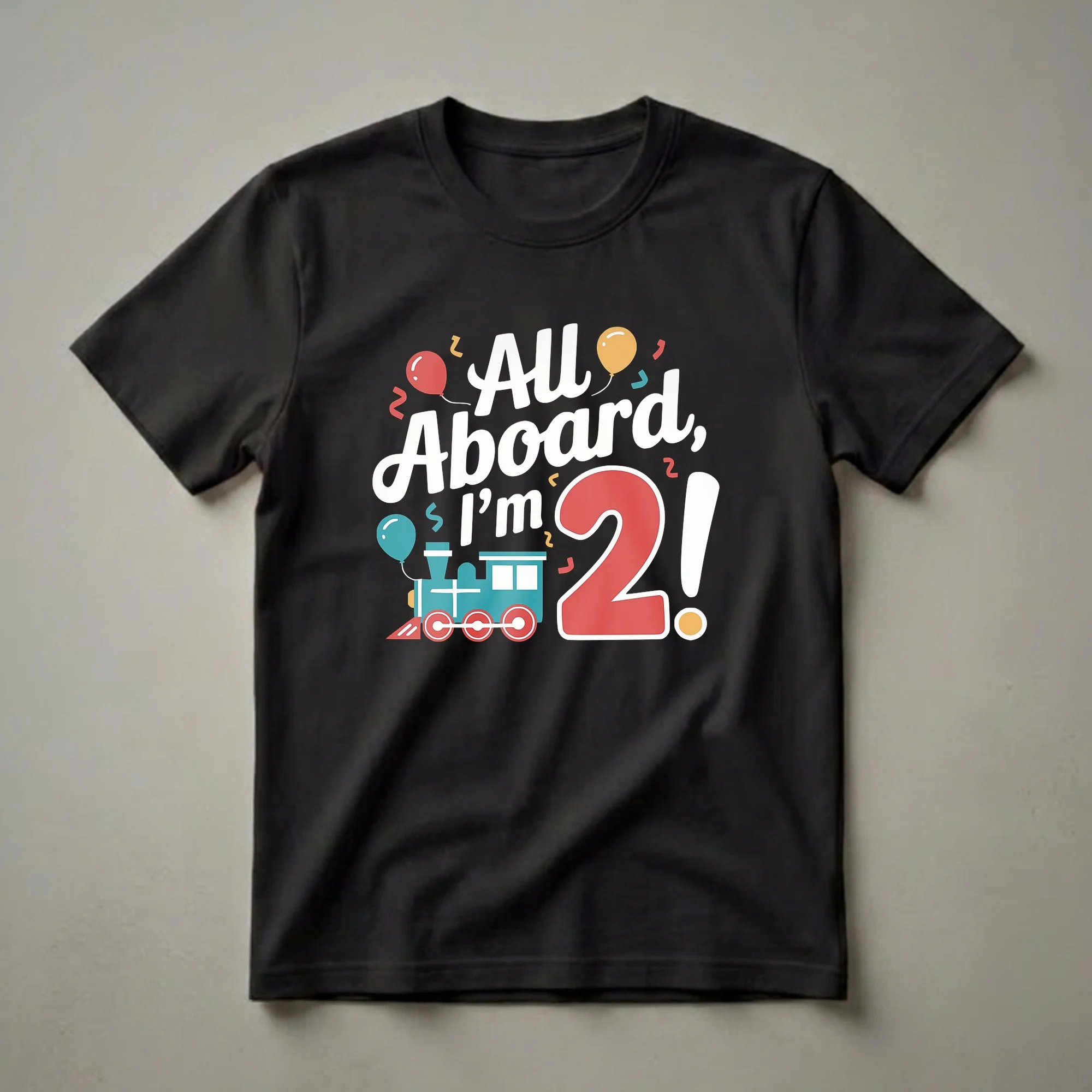 Hover to zoom · tap to expand All Aboard, I'm 2! Train Birthday T-Shirt for 2-Year-Olds