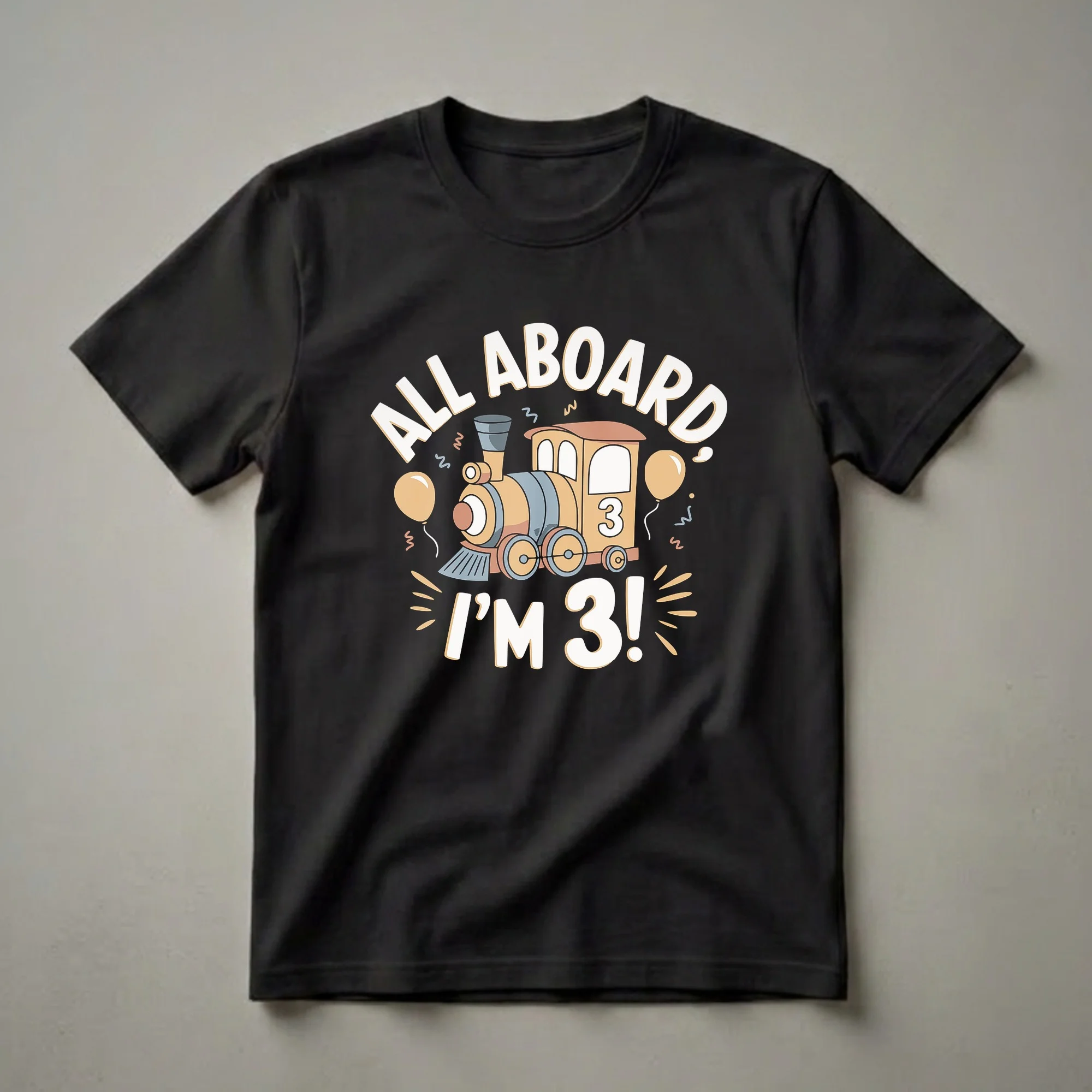 Hover to zoom · tap to expand All Aboard I'm 3 Train Birthday T-Shirt for 3-Year-Olds