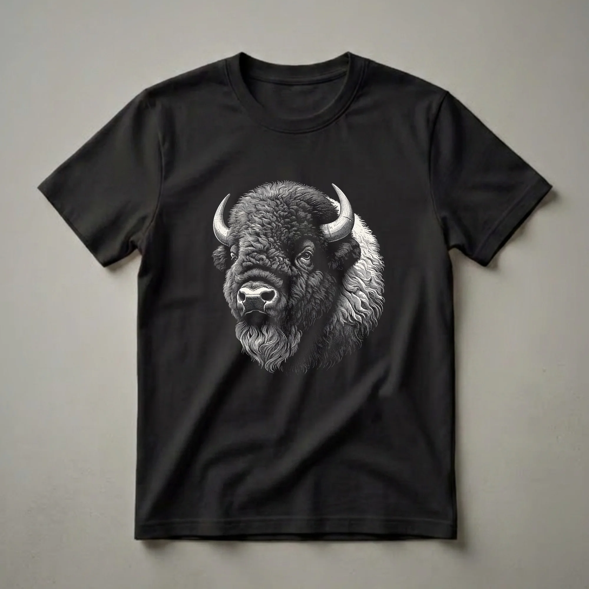 Hover to zoom · tap to expand American Bison Linocut Graphic T-Shirt for Wildlife Enthusiasts