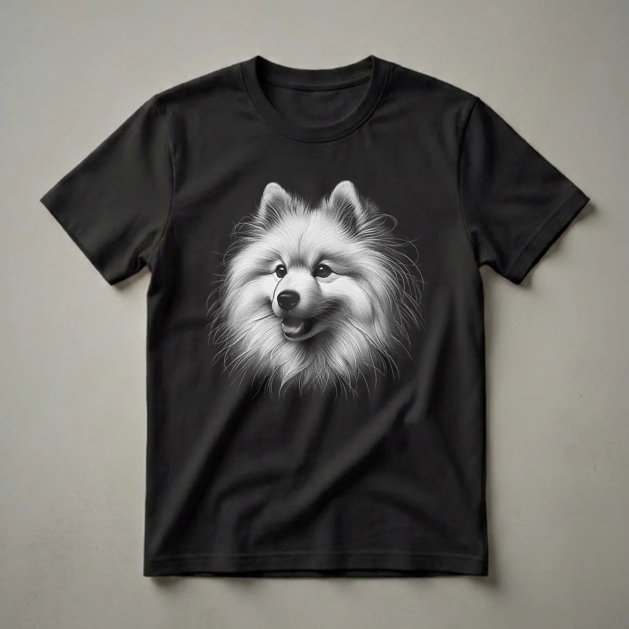 American Eskimo Dog owners know the breed's intelligence and playful spirit, often characterized by their striking white coats and alert expressions. This graphic tee captures the essence of the breed with a detailed, black and white sketch of an American Eskimo Dog's face. The art style emphasizes the dog's fluffy fur and bright, curious eyes, creating an eye-catching design that stands out against any background. The American Eskimo Dog, despite its name, originated in Germany and was historically used as a circus performer due to its trainability and charming demeanor. This t-shirt is a wonderful way for owners to express their affection for their canine companions. It makes a thoughtful gift for any American Eskimo Dog mom or dad who cherishes their furry friend. Wear this shirt to your next dog park visit or casual outing to spark conversations with fellow dog enthusiasts. This unique shirt is a staple for any dog lover's wardrobe, celebrating the joy these intelligent dogs bring into our lives.