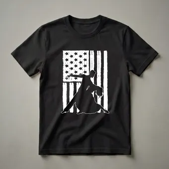 Contemporary dancers who express their artistry through movement will appreciate this unique t-shirt. The design features a striking silhouette of a male and female dancer captured mid-pose, set against a distressed American flag. This graphic tee blends the elegance of dance with patriotic pride, making it a standout piece for any dancer's wardrobe. The distressed texture of the flag adds a vintage, artistic feel, complementing the dynamic lines of the dancers. This shirt is a thoughtful gift for the dancer in your life, whether they participate in competitive dance, perform in shows, or simply love to move. It's a go-to tee for casual outings, dance practice warm-ups, or showing support at dance events. The bold graphic is sure to spark conversations among fellow dance enthusiasts and admirers of American heritage. Wear this shirt to express your dual passions for dance and country, celebrating the freedom of expression that both embody. It's an eye-catching way to connect with the vibrant dance community.