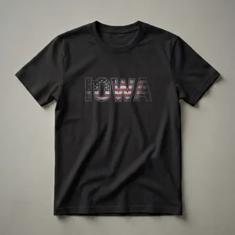 Iowans who want to display their state pride and patriotism will reach for this unique graphic tee. The design features the word "IOWA" rendered in bold, distressed block letters. Within each letter, the iconic stars and stripes of the American flag are visible, giving it a weathered and vintage feel. A sketched outline surrounds the letters, adding an artistic, hand-drawn element to the overall aesthetic. This shirt is a thoughtful gift for anyone who calls Iowa home, whether they are lifelong residents or have moved away but still hold a special place in their heart for the Hawkeye State. It's a great way to celebrate your roots and your love for the USA. Wear this tee to local festivals, family gatherings, or simply as a daily expression of your identity. Iowa, known as the "Corn State," is a heartland state celebrated for its agricultural contributions and friendly communities. This apparel serves as a wearable tribute to that spirit.