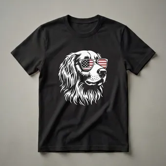 Hover to zoom · tap to expand American Flag English Setter Dog With Sunglasses Graphic T-Shirt
