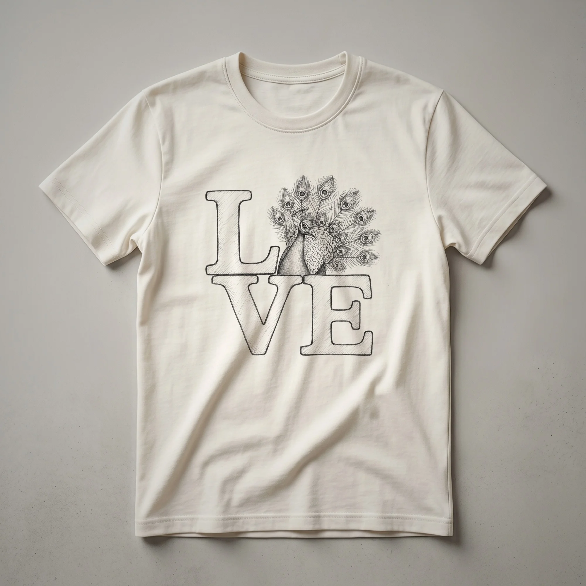 Birdwatchers and admirers of exotic avian beauty will appreciate this unique peacock t-shirt. The design features a stylized peacock, its magnificent tail feathers artfully arranged to form a heart shape, symbolizing love and admiration for these striking birds. Peacocks, native to South Asia, are renowned for their iridescent plumage and the male's impressive courtship display. This graphic tee captures that essence with a modern artistic flair. It's a wonderful way for bird enthusiasts to express their passion for ornithology and the natural world. This shirt works well for casual outings, nature walks, or as a conversation starter among fellow bird lovers. Looking for a thoughtful gift for the birdwatcher in your life? This eye-catching peacock tee is a fantastic choice, offering a blend of art and nature that any admirer of these magnificent creatures would cherish. It's a staple piece for anyone who finds joy in the vibrant colors and elegant forms of the avian kingdom. Wear it to your next birding expedition or simply to brighten your day.