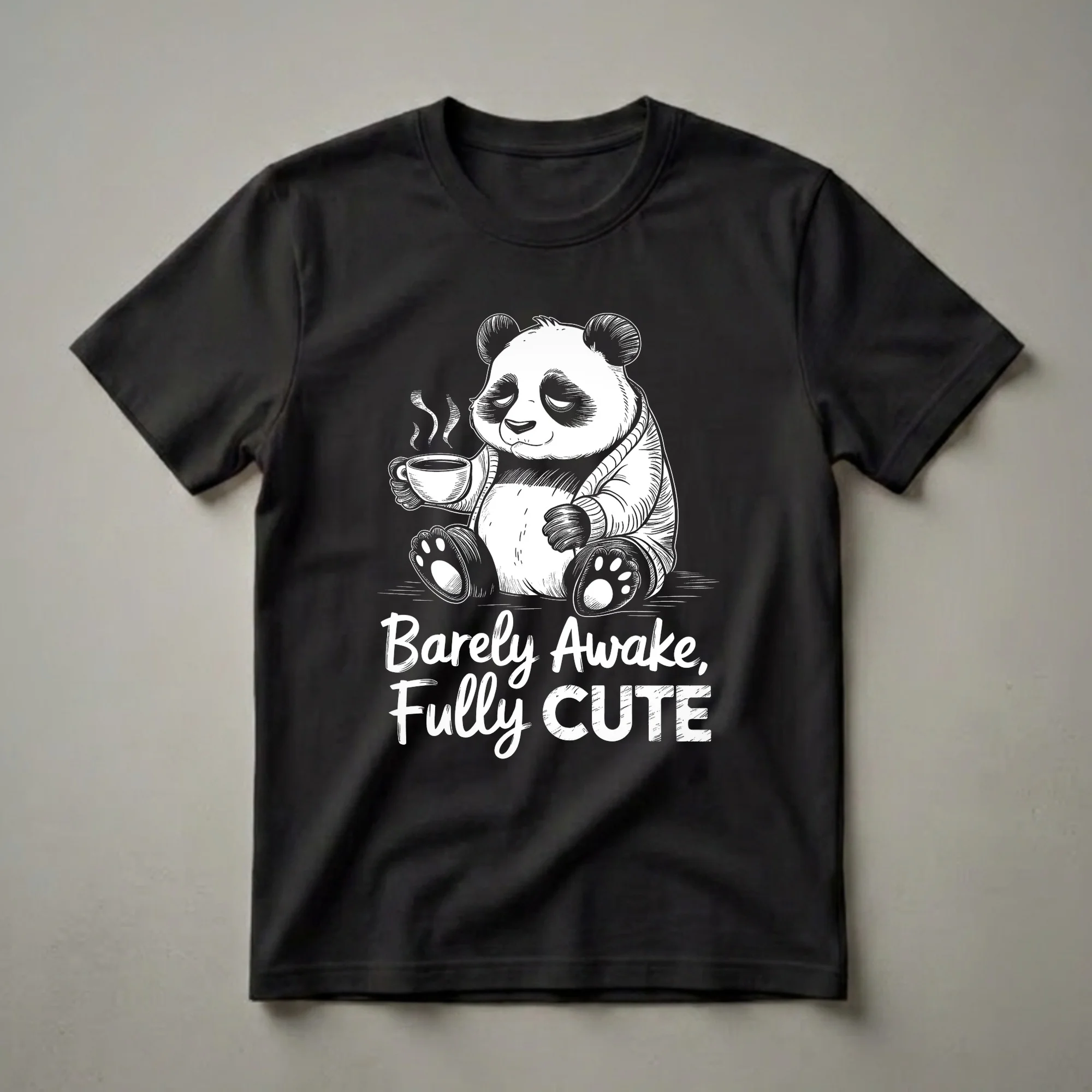 Hover to zoom · tap to expand Barely Awake Fully Cute Panda Bear Coffee Lover Graphic T-Shirt