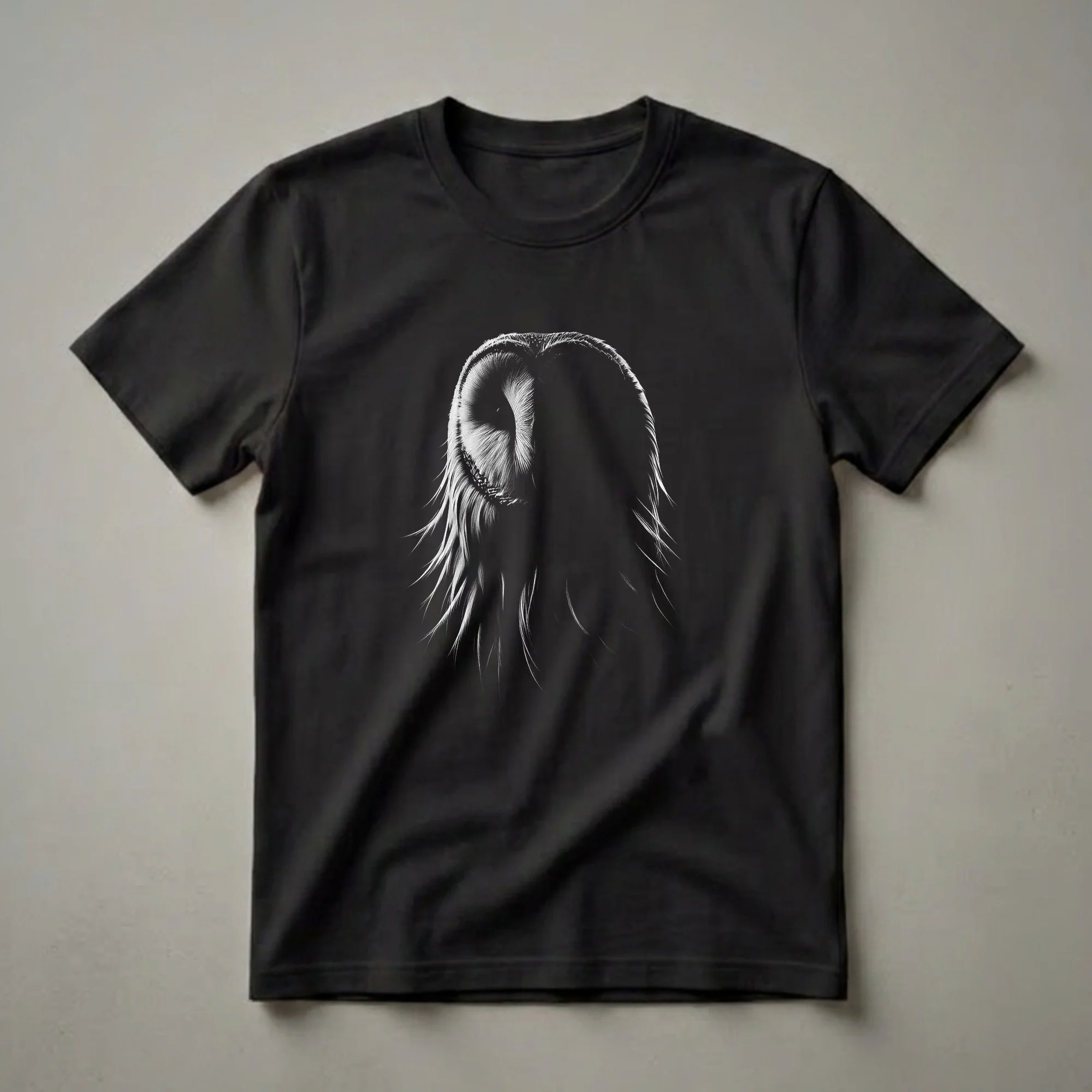 - Artistic barn owl face graphic tee for bird lovers and wildlife art fans.