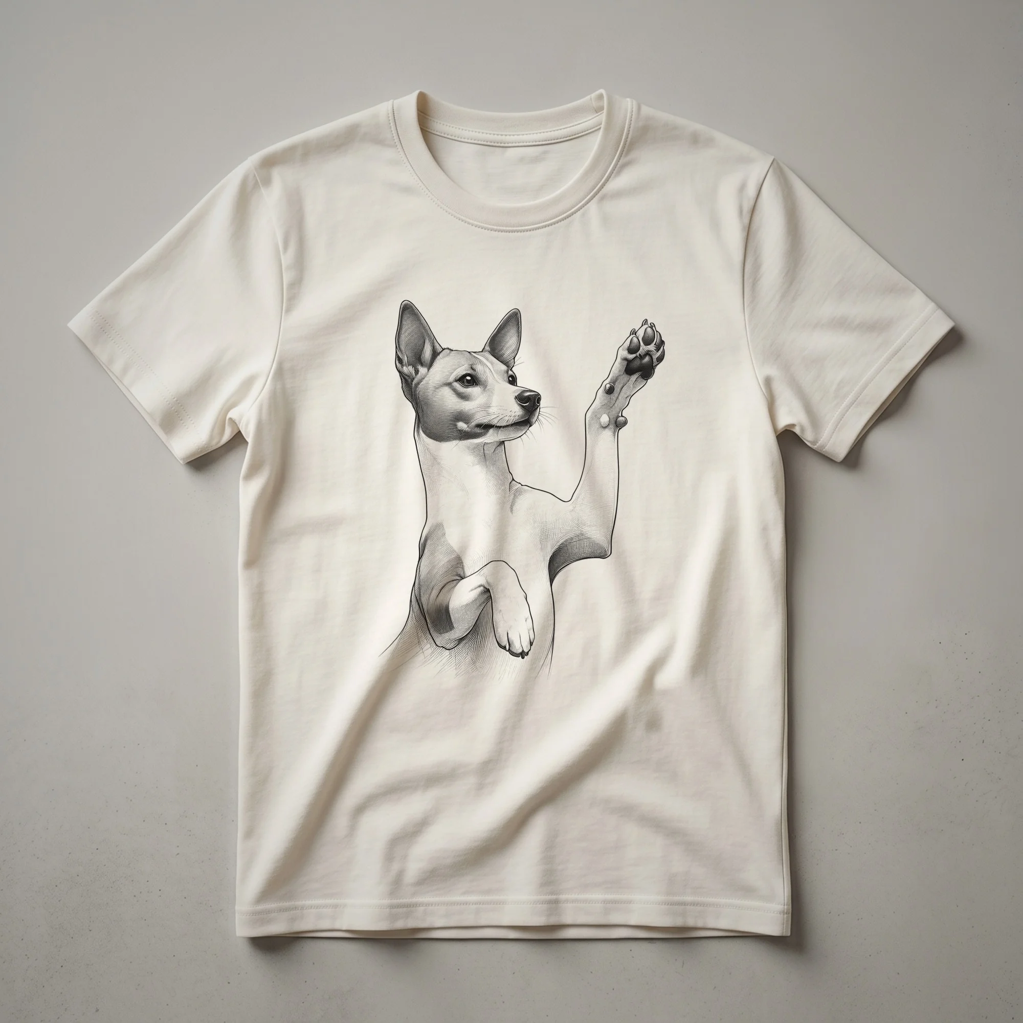 - Showcase your Basenji pride with this charming paw-raising dog art t-shirt, perfect for any dog lover.