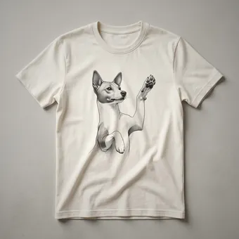Basenji owners know their breed's distinctive personality and intelligence. This graphic tee features a stylized Basenji dog in the act of raising its paw, a charming pose that captures the breed's alert and curious nature. The design is rendered in a clean, line-art style, making it a subtle yet eye-catching addition to any dog lover's wardrobe. Basenjis, originating from Central Africa, are known for their unique "baroo" sound instead of barking, and their fastidious grooming habits, often compared to cats. This shirt is a wonderful way for any Basenji mom or dad to express their affection for their unique canine friend. It makes a thoughtful gift for birthdays, holidays, or just because. Wear this comfortable tee to your next dog park visit, a casual outing with friends, or while relaxing at home with your beloved Basenji. It's a staple in the collection for anyone who cherishes this fascinating breed and wants to showcase their pride.
