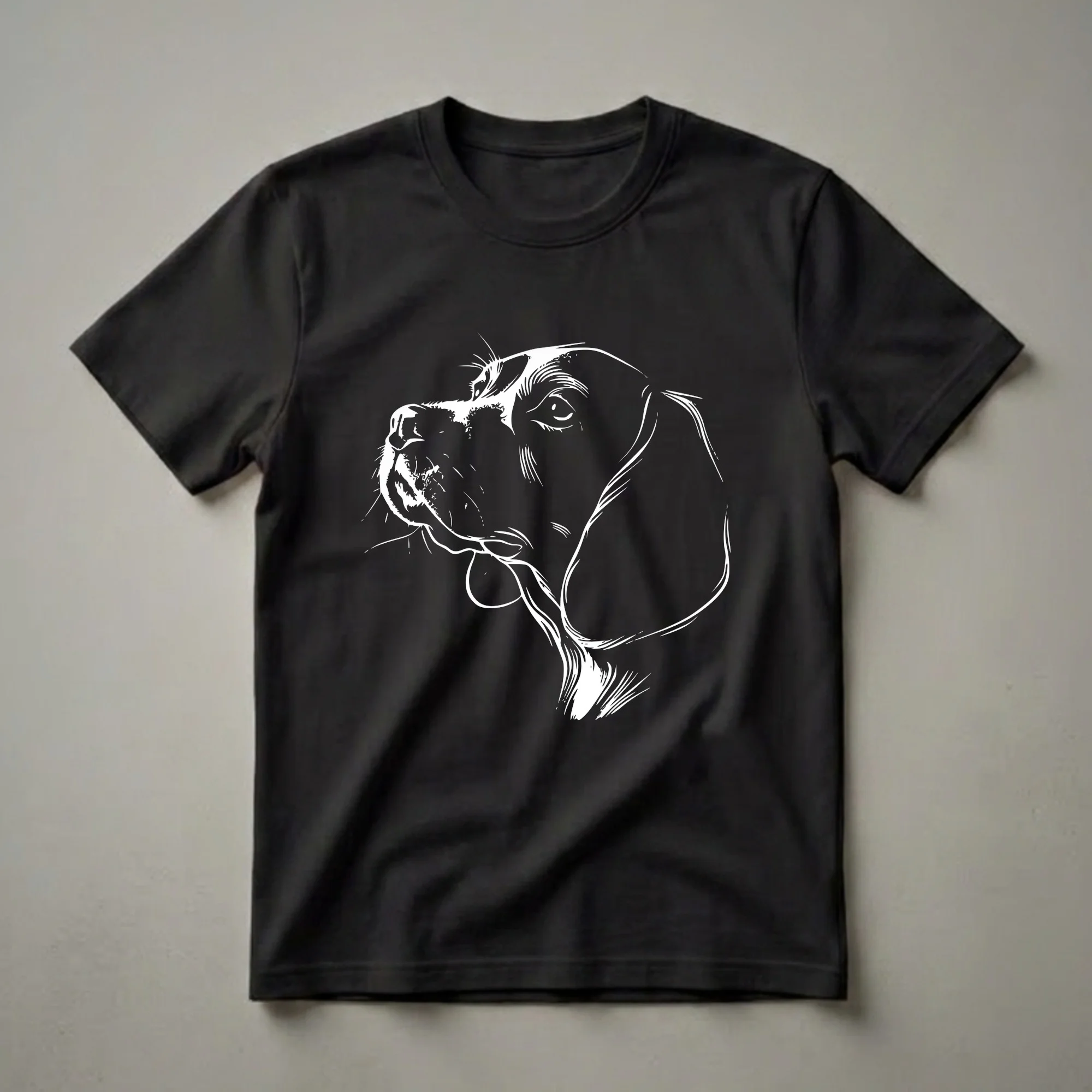 Express your love for the distinctive charm of the Beagle breed with this eye-catching graphic tee showcasing a minimalist line art portrait. This graphic tee features a striking white line art sketch of a Beagle's face in profile, capturing the breed's expressive eyes and floppy ears against a solid black background. Beagles are renowned for their merry disposition and keen sense of smell, often used in scent detection roles due to their incredible olfactory abilities. This shirt is a staple for any Beagle mom or dad who wants to wear their affection for their furry companion. It makes a thoughtful gift for the dog lover in your life, a thoughtful choice for casual outings, dog park visits, or simply relaxing at home. This unique t-shirt celebrates the beloved Beagle breed with an artistic and eye-catching design that dog enthusiasts will reach for time and again.