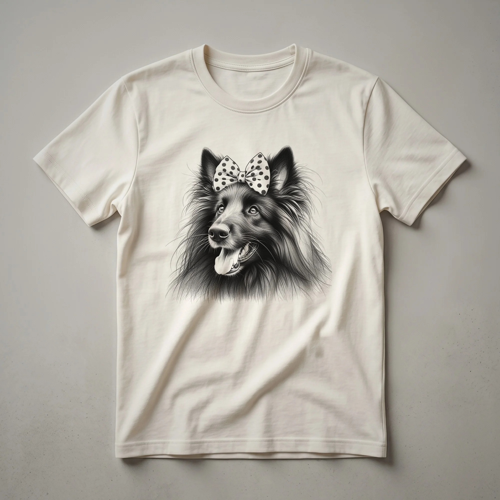 - Features a distressed graphic of a Belgian Tervuren dog's head.