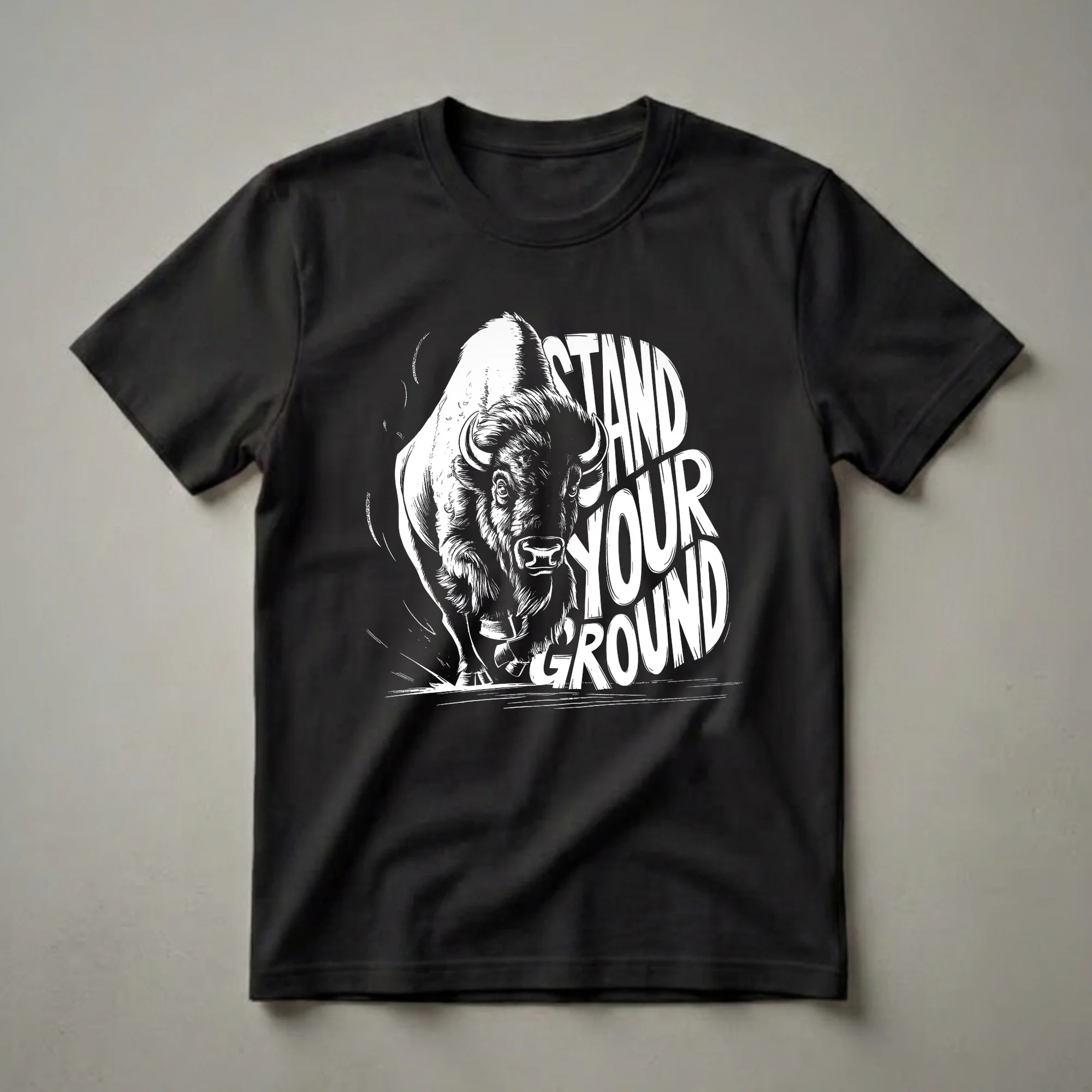- Features a powerful charging bison graphic with "STAND YOUR GROUND" text.