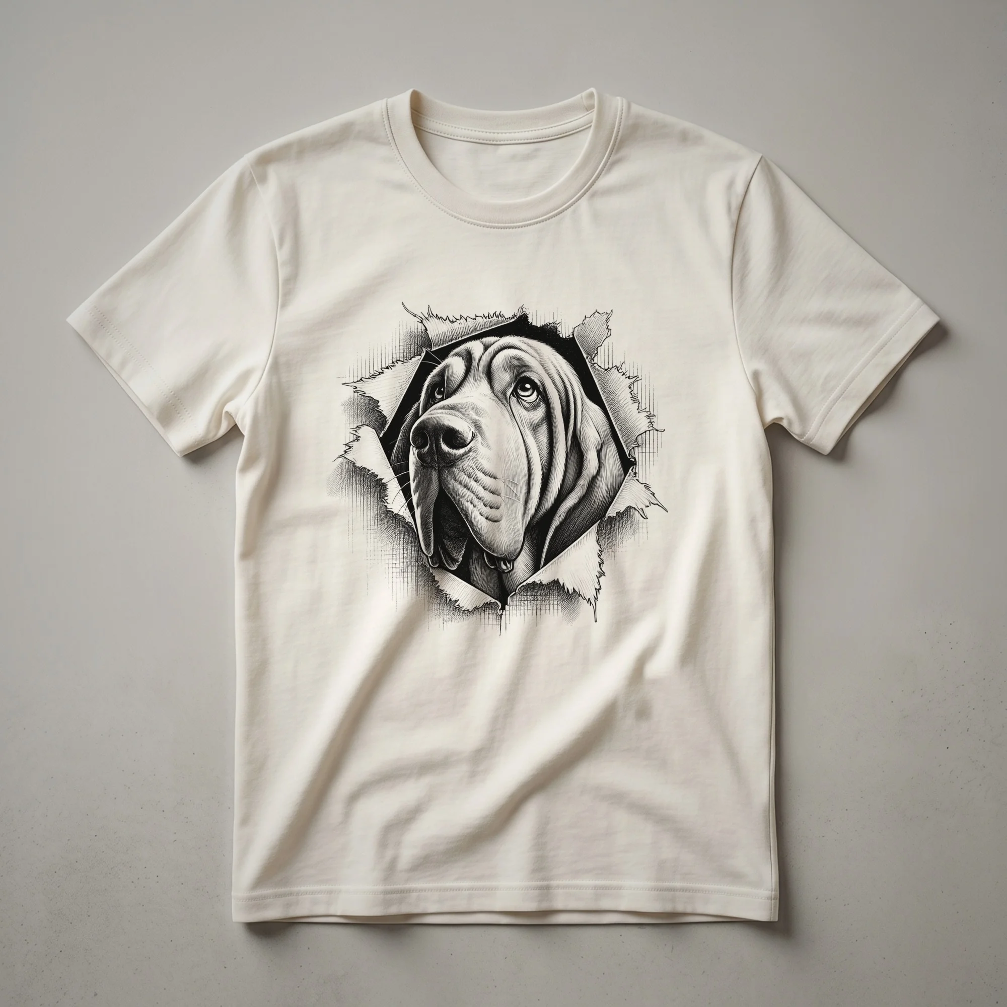 Dog lovers can now showcase their adoration for the distinguished Bloodhound with this charming peeking floral graphic tee. This eye-catching t-shirt features a Bloodhound's face peeking over a vibrant floral border, making it a unique piece of apparel for any dog mom or dog dad. Bloodhounds, originally bred in Belgium for tracking scent, are known for their incredible olfactory senses and their calm, friendly demeanor. This graphic tee is a wonderful way for any admirer of this scent hound to express their passion. It makes a thoughtful gift for a friend or family member who cherishes their Bloodhound. Wear this shirt to your next dog park visit or casual outing and let your canine companion pride shine through. This shirt is a staple for any dog lover's wardrobe, offering a blend of style and affection for man's best friend.