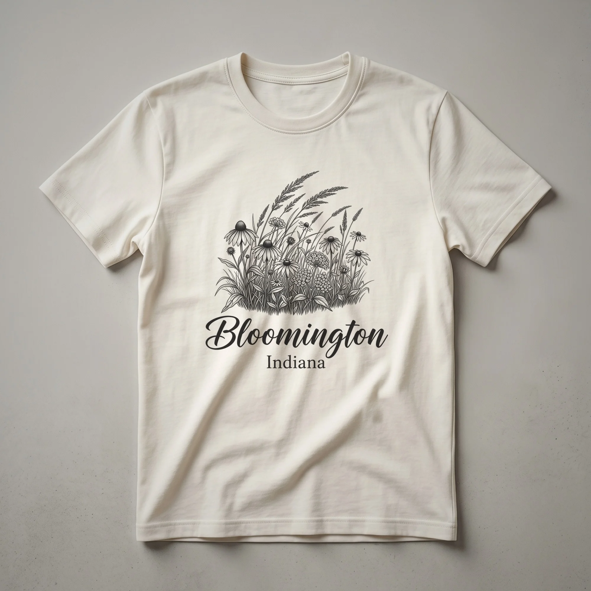 - Bloomington Indiana wildflower sketch art t-shirt for residents and fans.